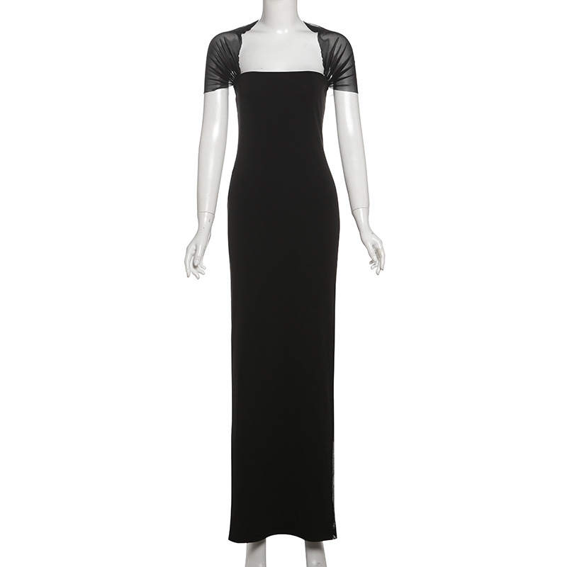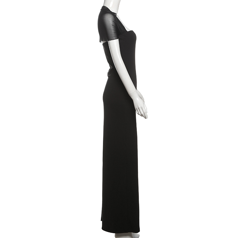 Summer Sexy Tight Waist See through Maxi Dress Elegant Shoulder Baring Solid Color Dress Women Clothing