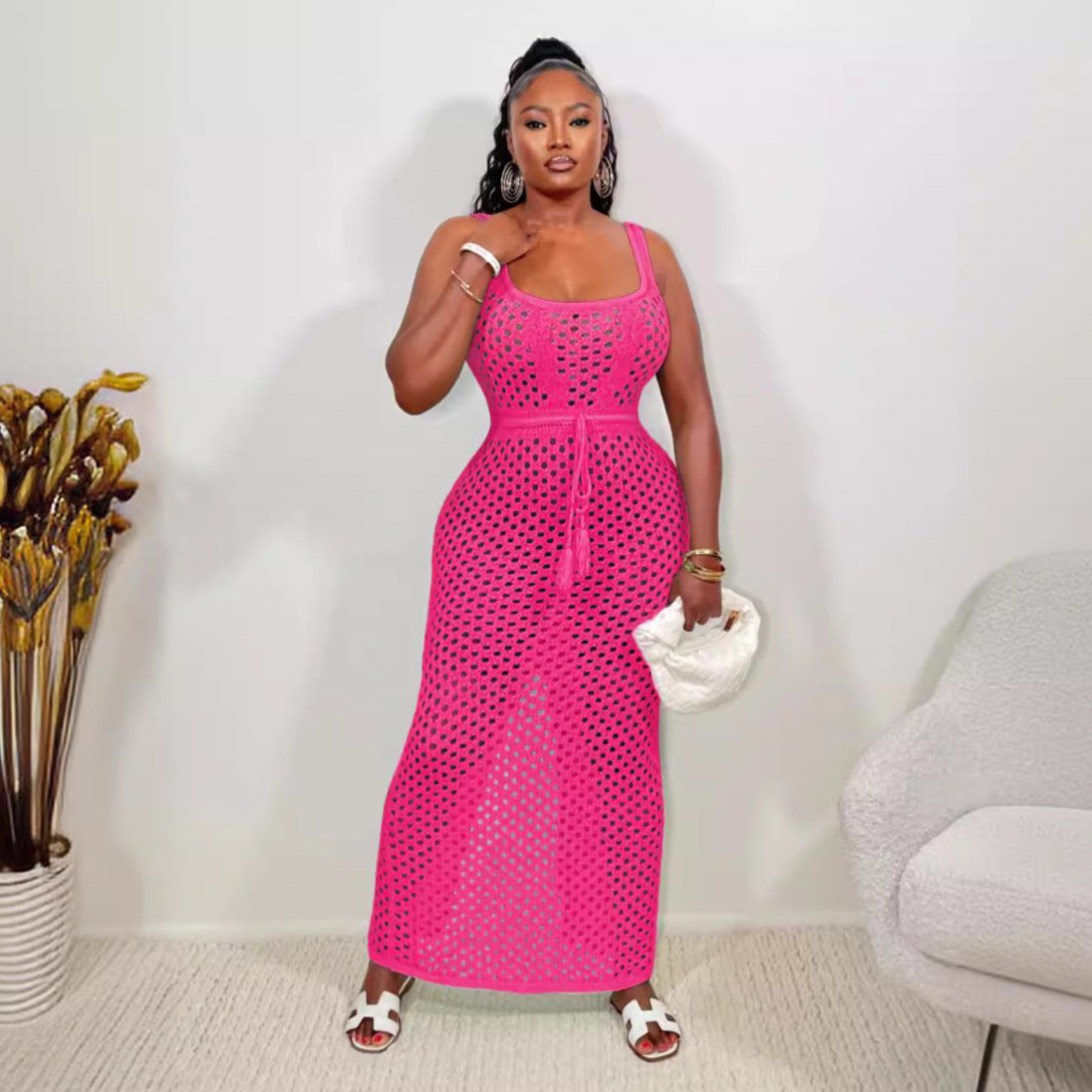 Summer Women Clothing Lace Mesh Vest Top Hip Knitwear Beach Maxi Dress