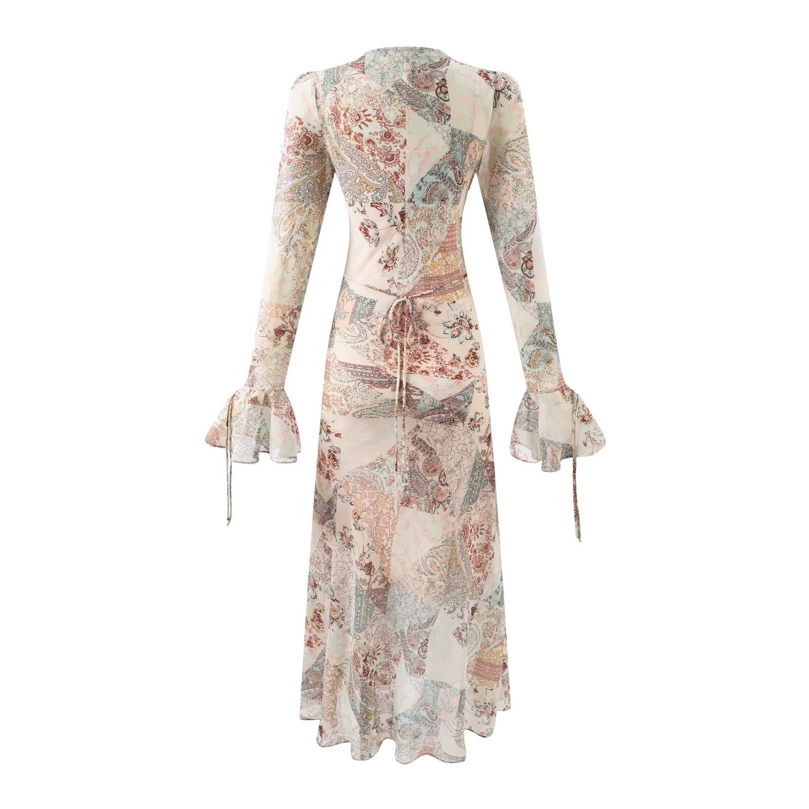 Summer Women Long Sleeved V neck Printed Dress Women