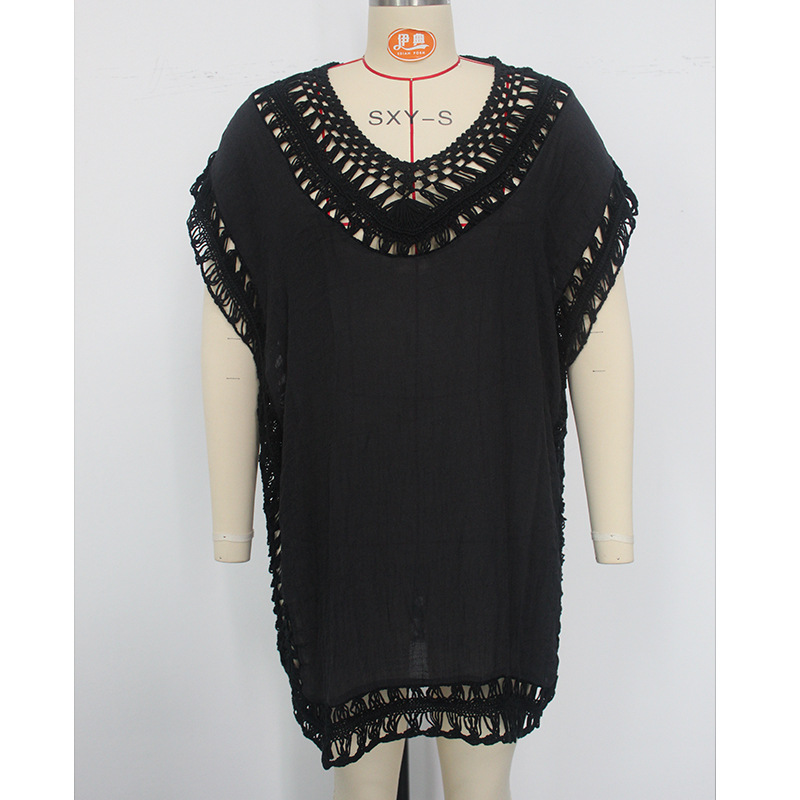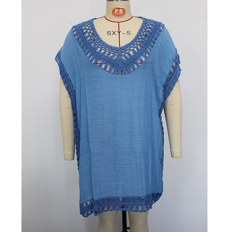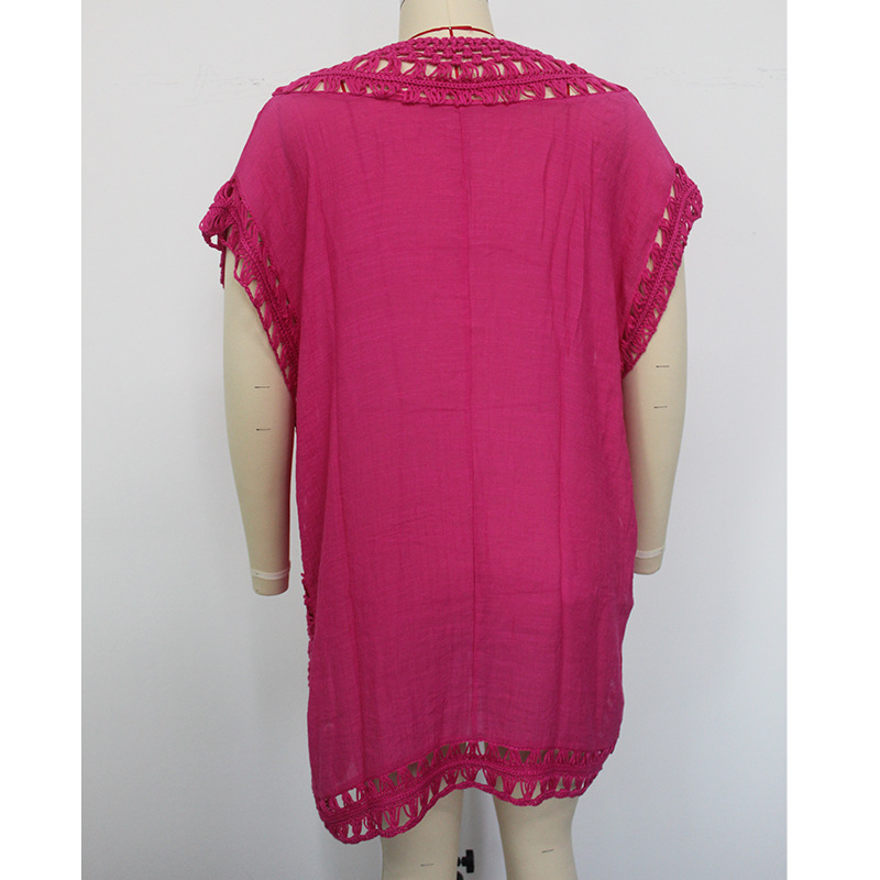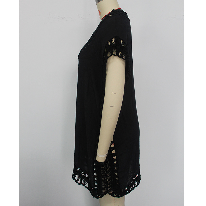 Sun Protective Clothing Holiday Hand Hook Floral Neckline Stitching Solid Color Sexy Sun Protection Casual Short Beach Cover-up