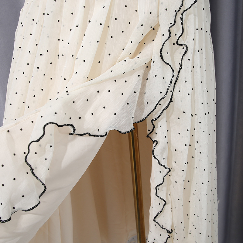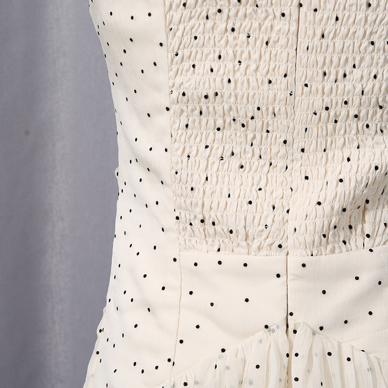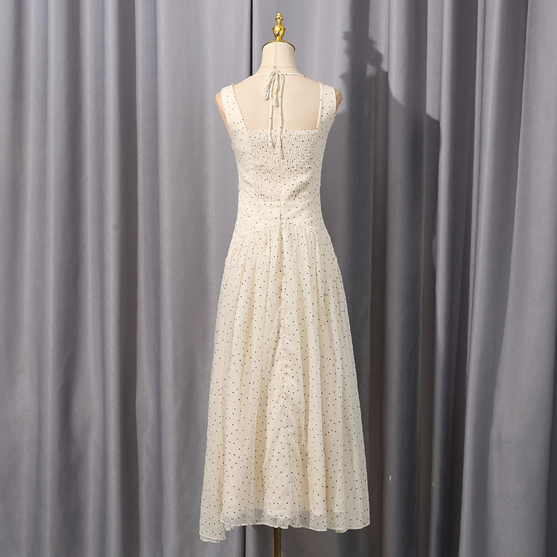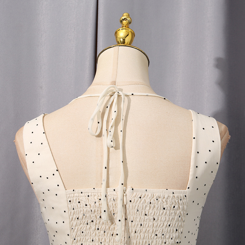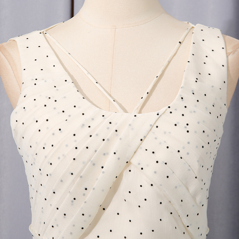 Sweet Milk Apricot round Neck Sleeveless Polka Dot Brace Maxi Dress Summer Women Clothes Dress