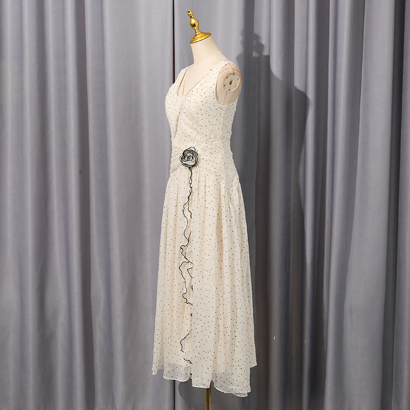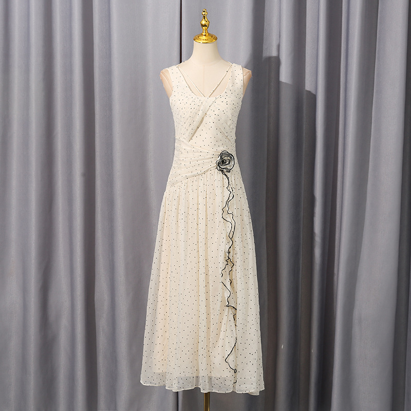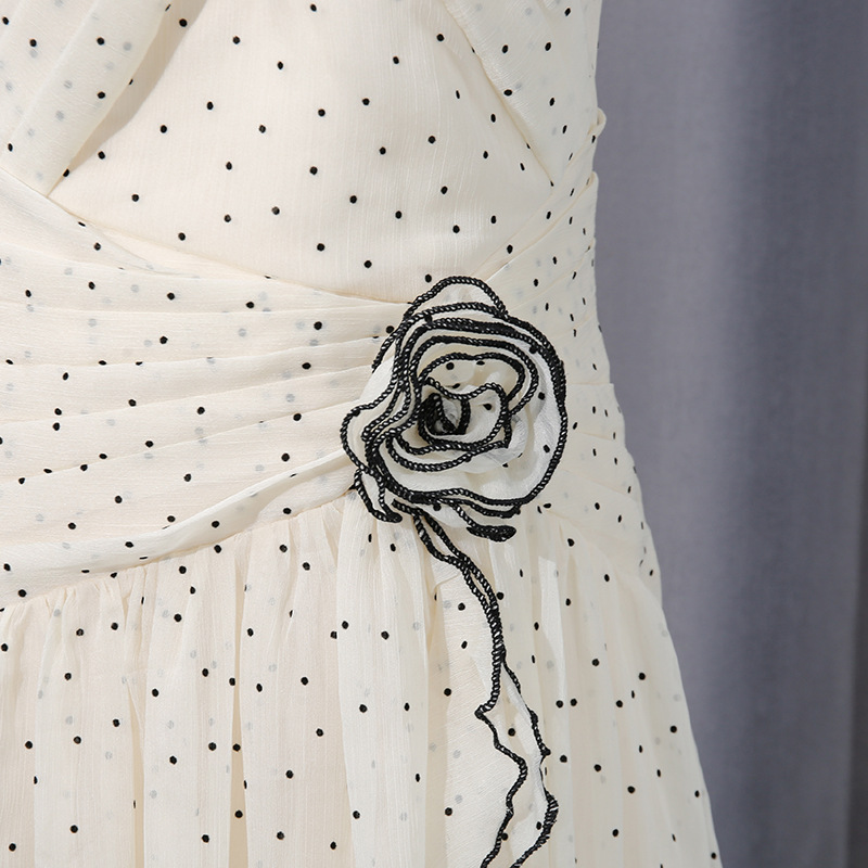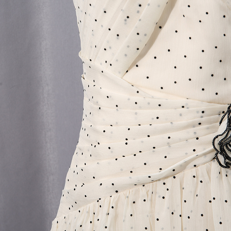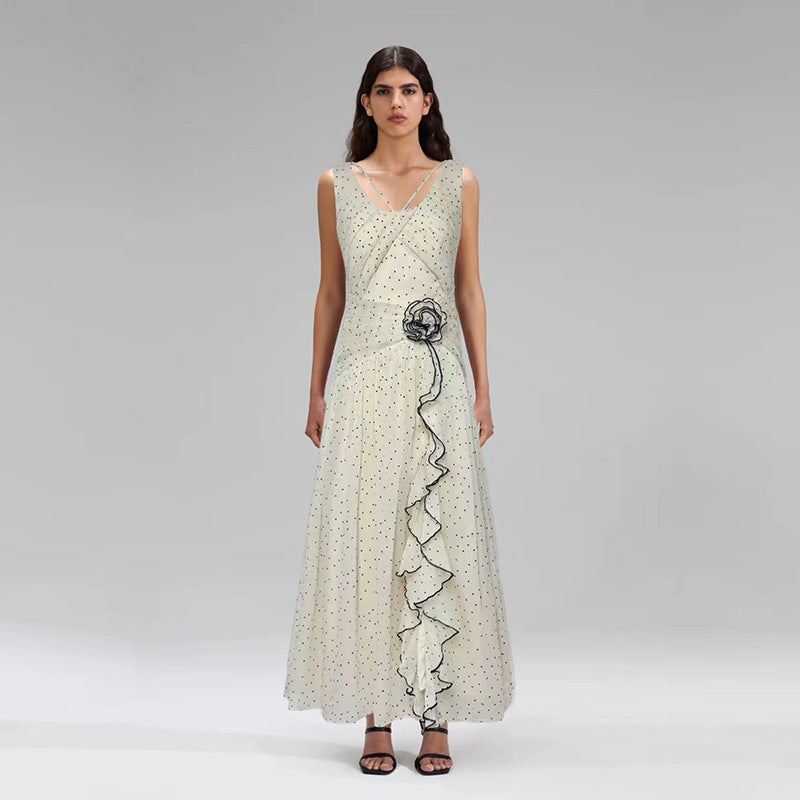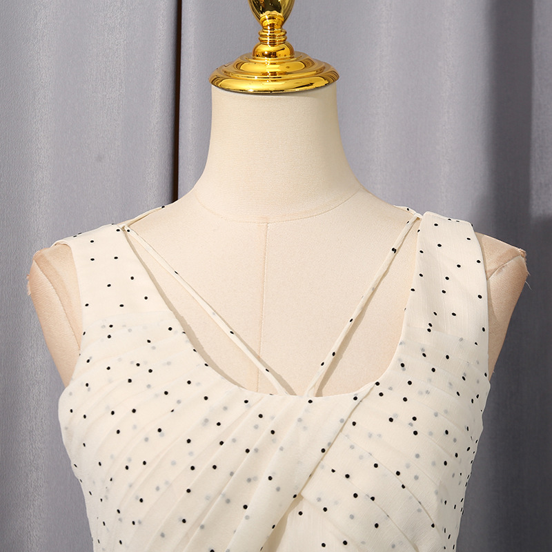 Sweet Milk Apricot round Neck Sleeveless Polka Dot Brace Maxi Dress Summer Women Clothes Dress