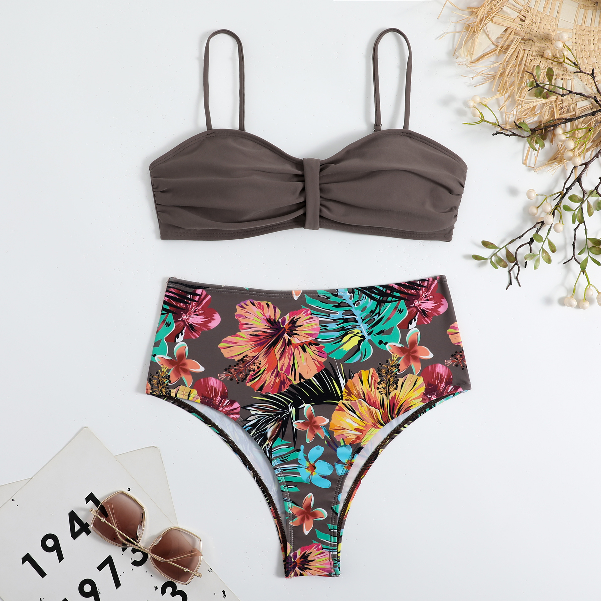 Swimsuit Women Split Bikini Retro Sexy Solid Color Printing Bikini Wear