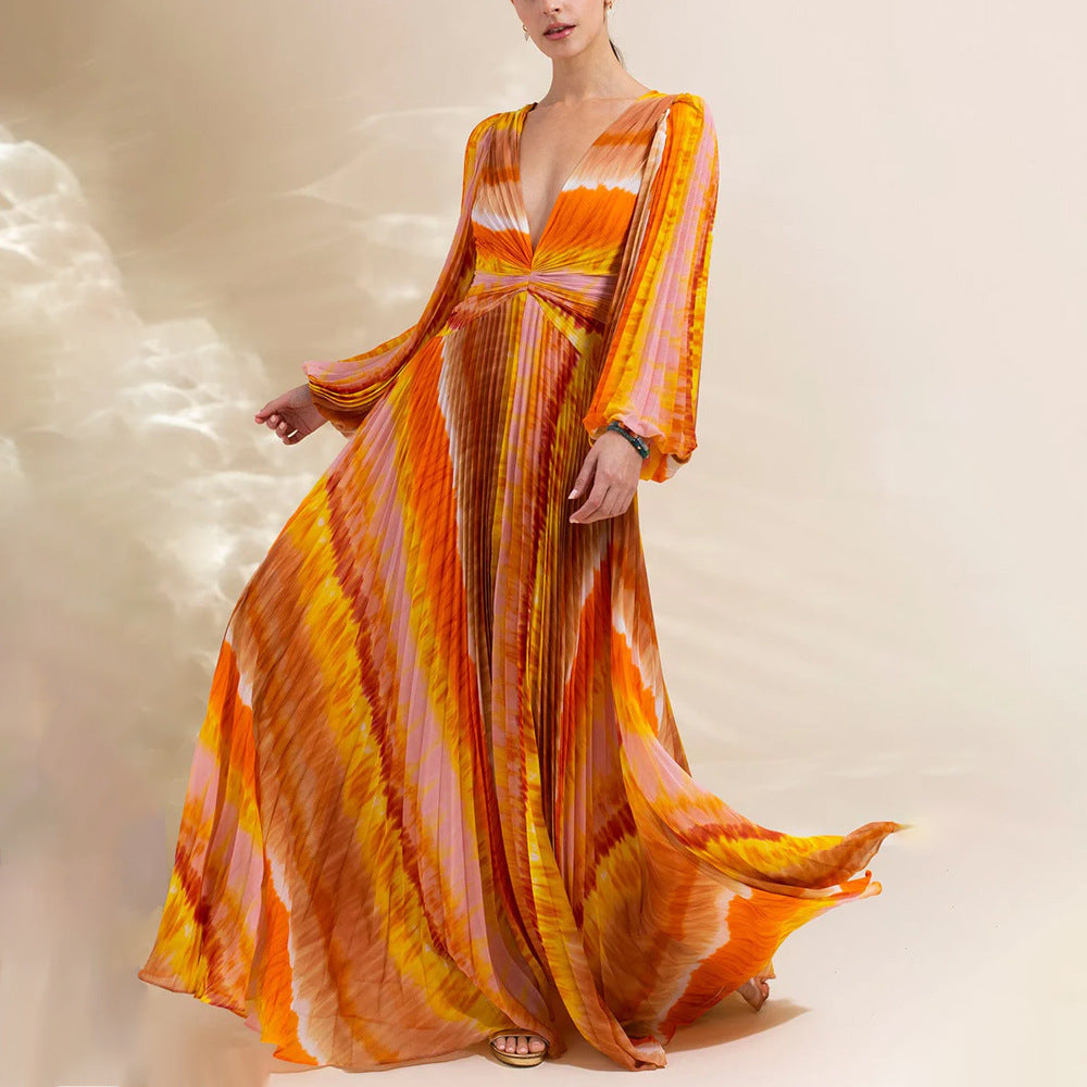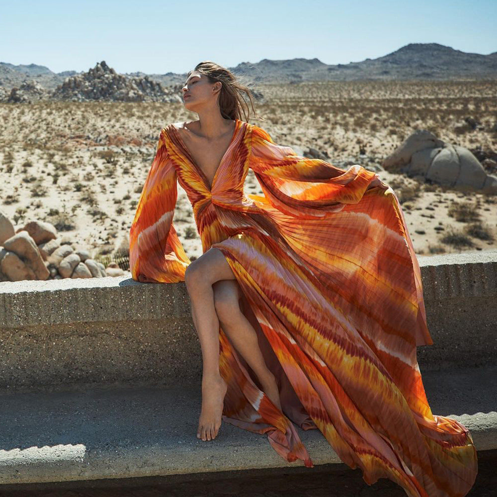 V Neck Long Sleeve One Piece Swimsuit Women Vacation Beach