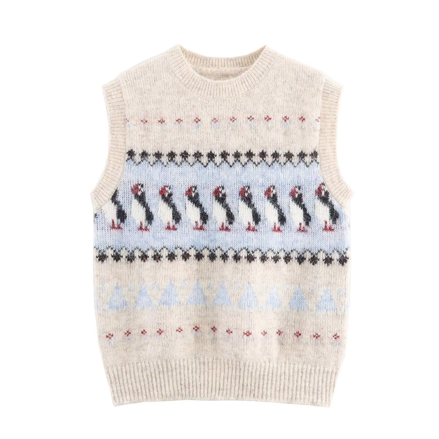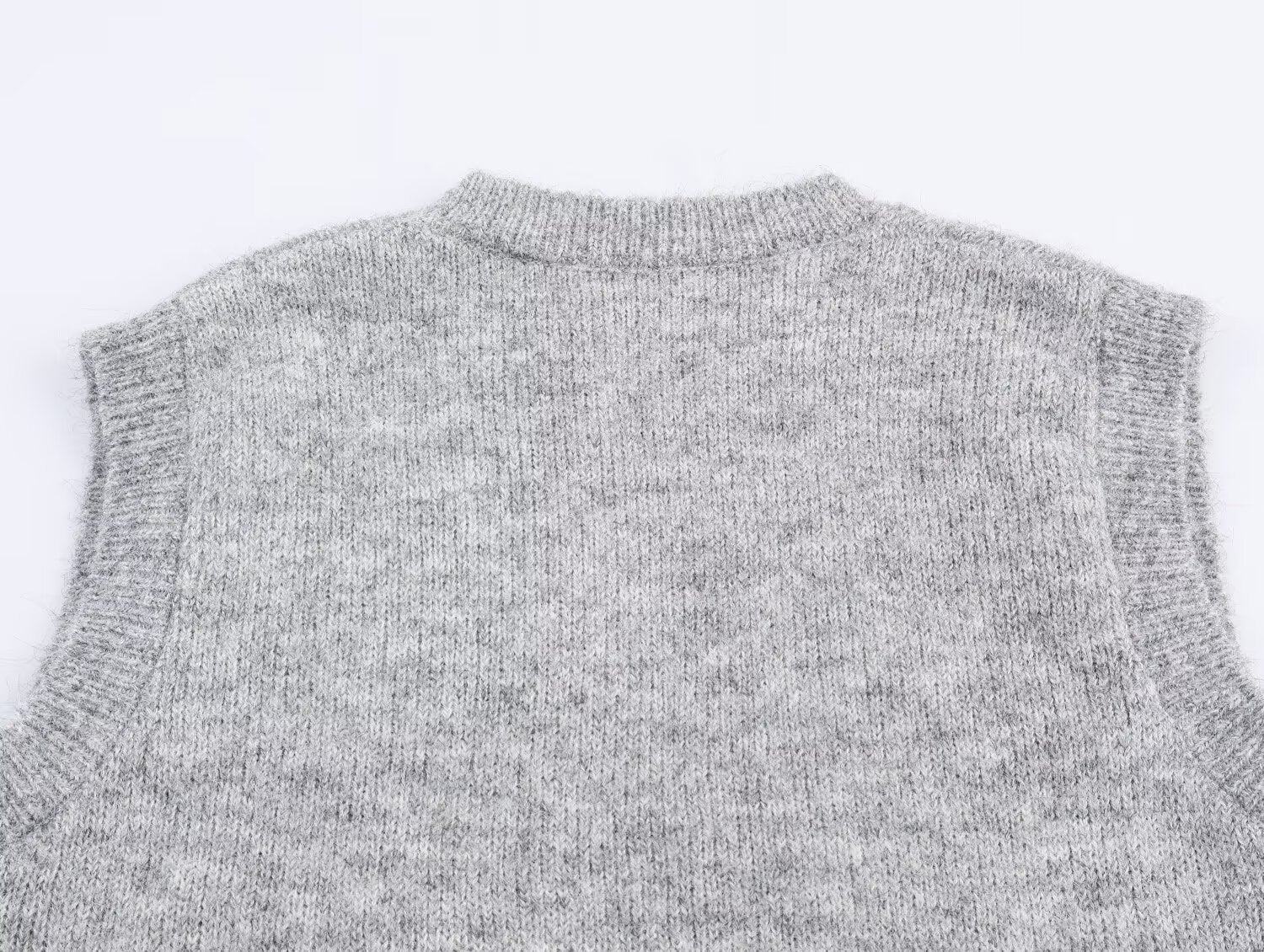 Women Clothing Autumn Korean Outerwear Bandage Floral Decorations round Neck Knitted Vest Top