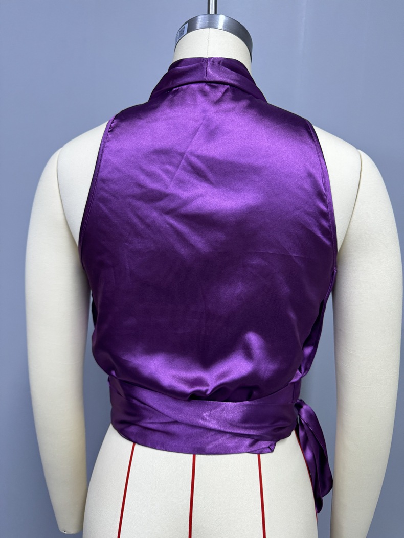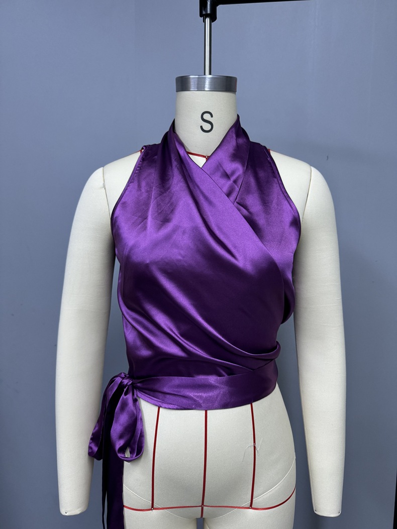 Women Clothing Satin Shirt Women Spring Summer Halter Sexy Lacing Side Wrap Sleeveless Shirt Top