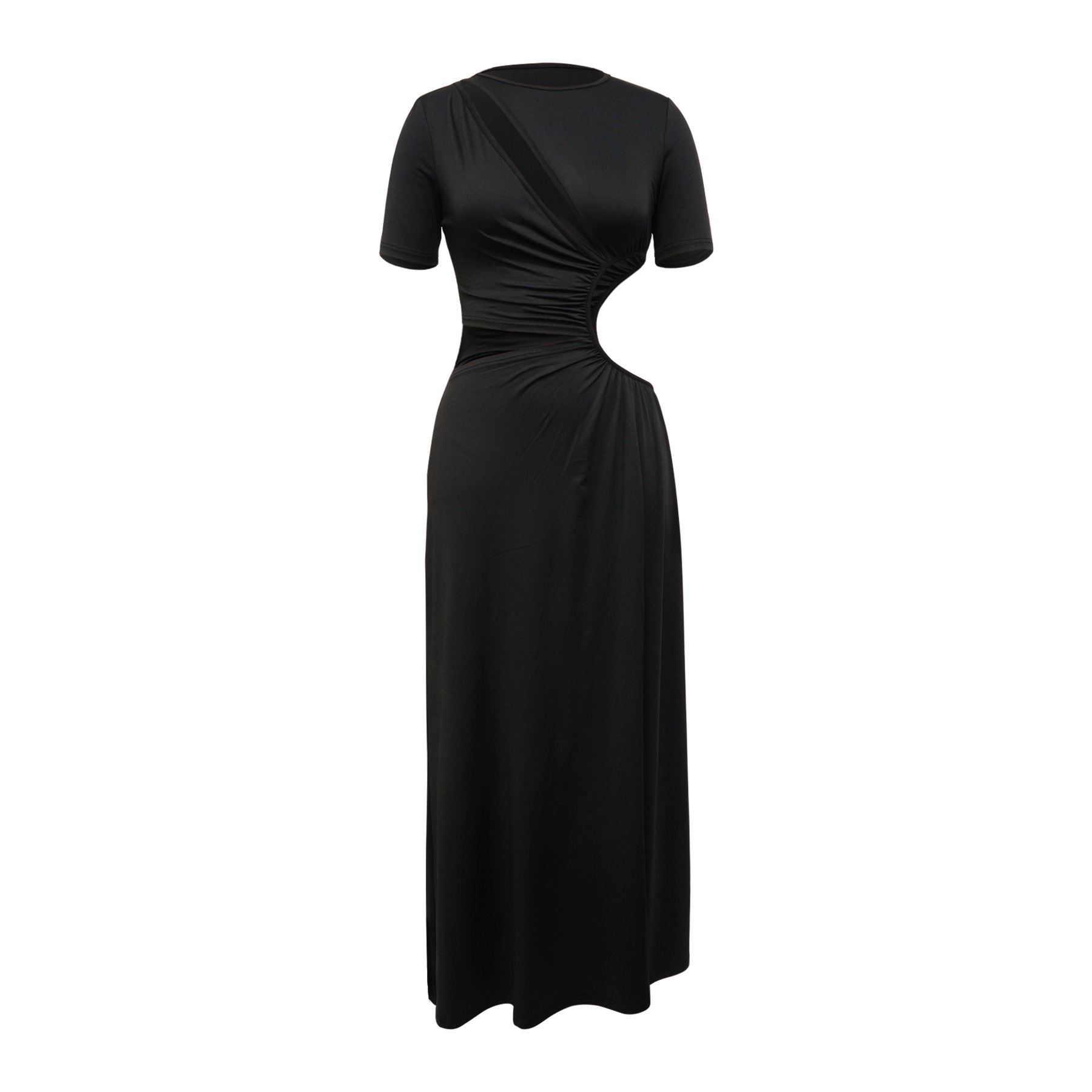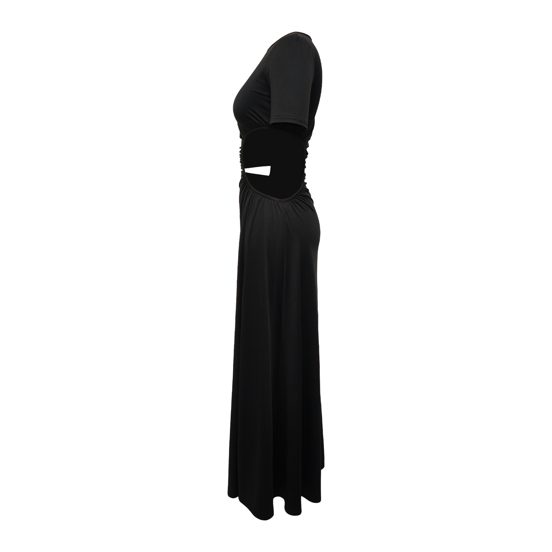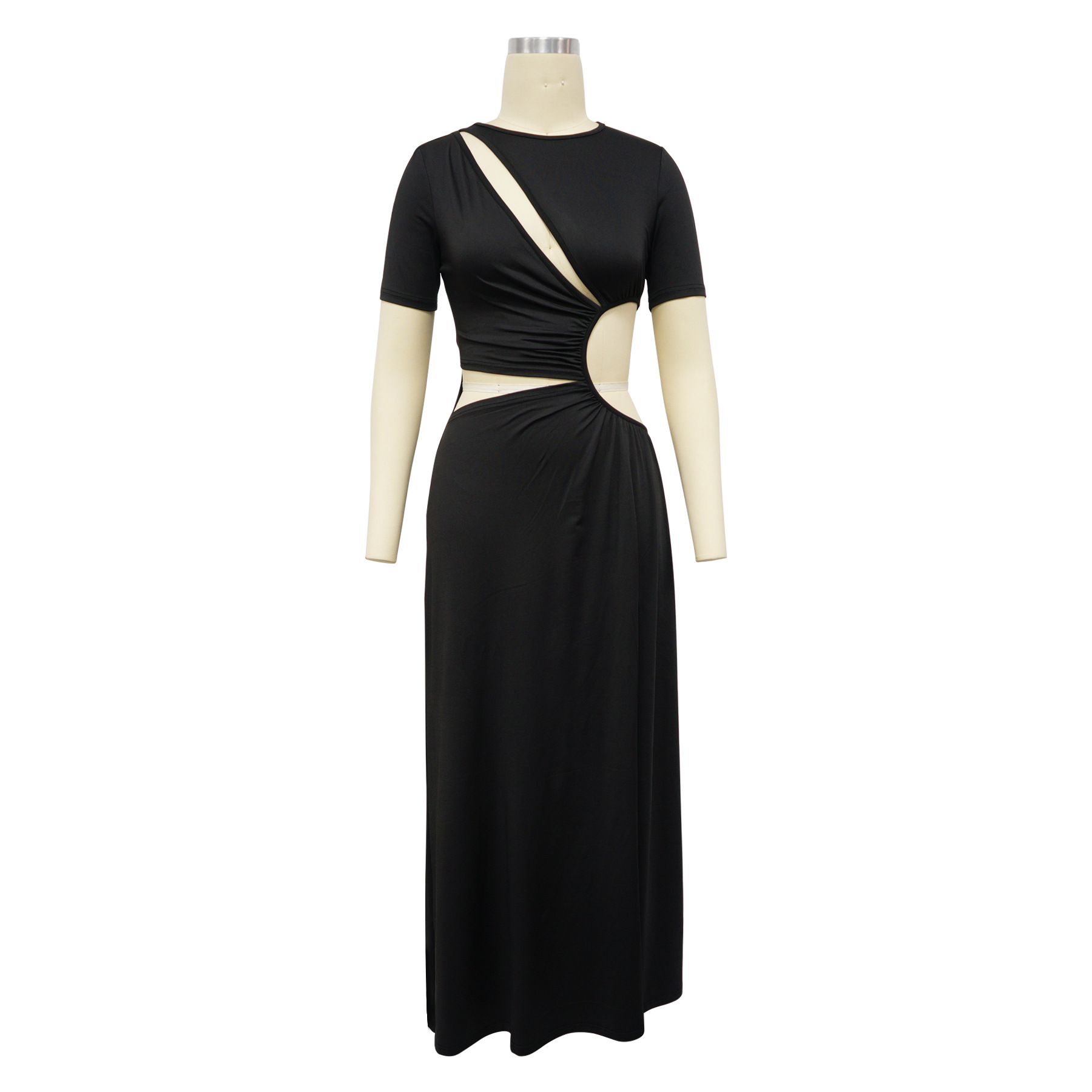 Women Clothing Sexy Waist Hollow Out Cutout out Irregular Asymmetric Maxi Dress Solid Color Split Dress