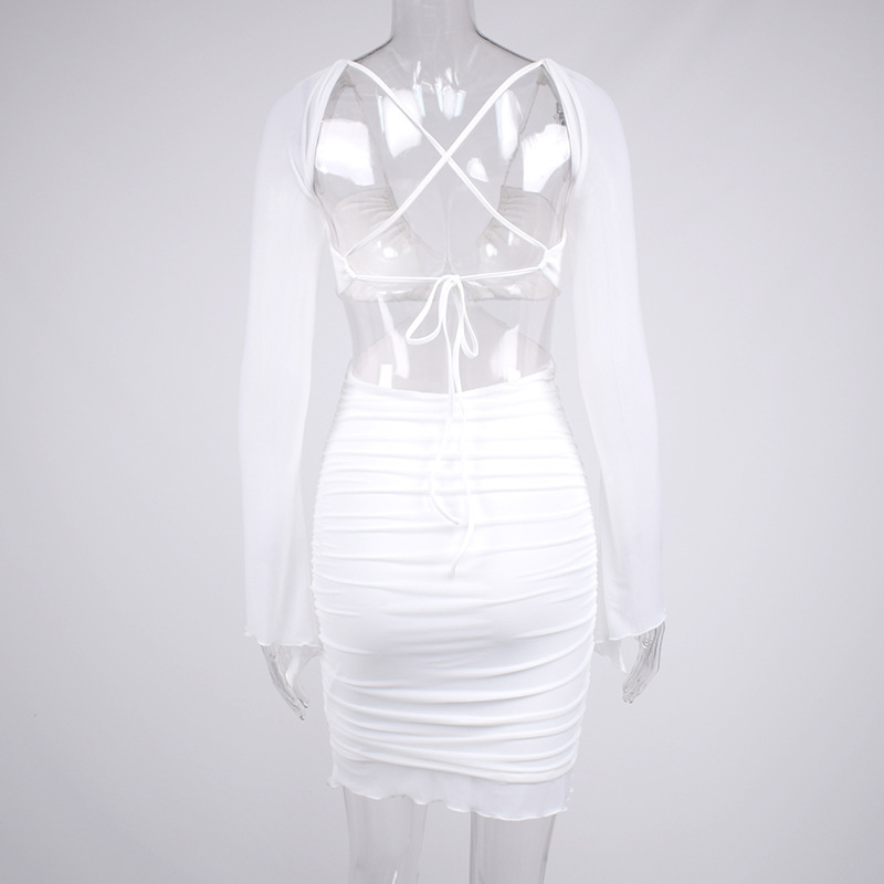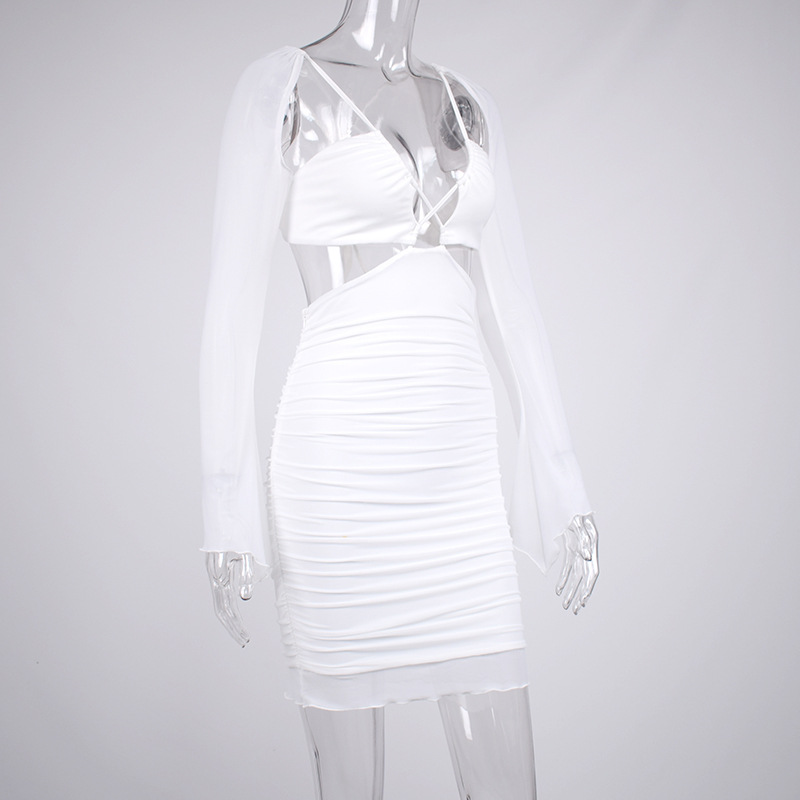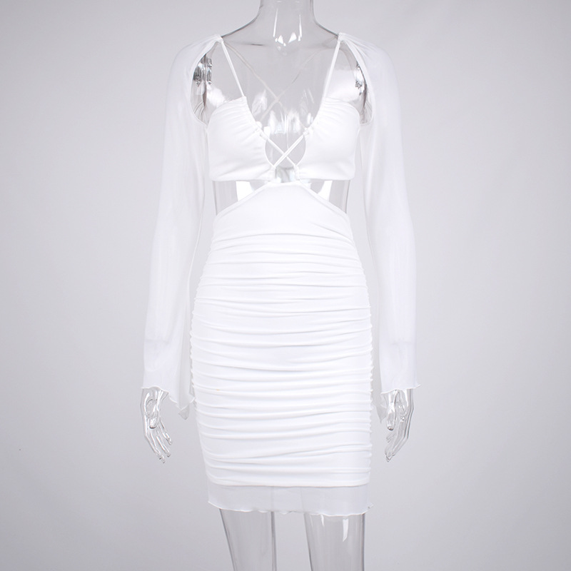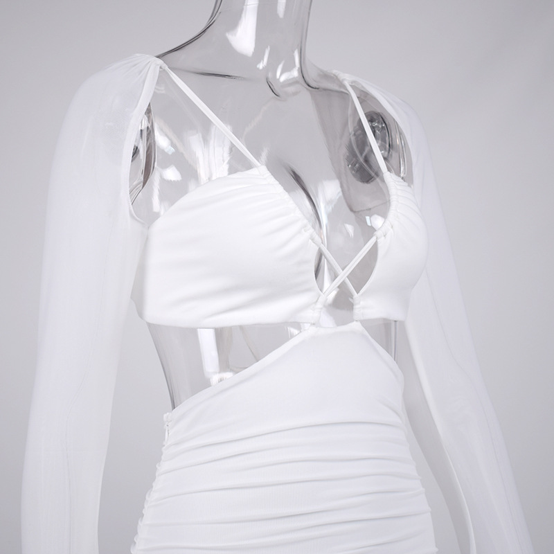 Women Clothing Summer Sexy Hollow Out Cutout Mesh Backless Hip Dress