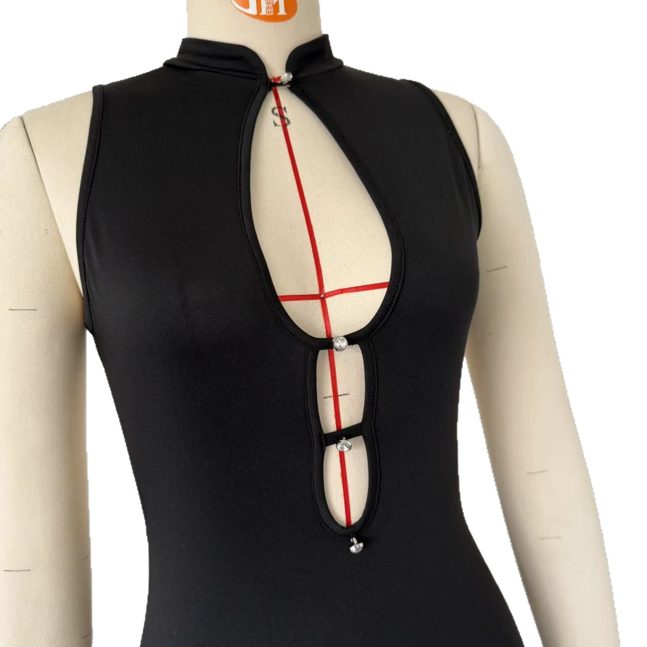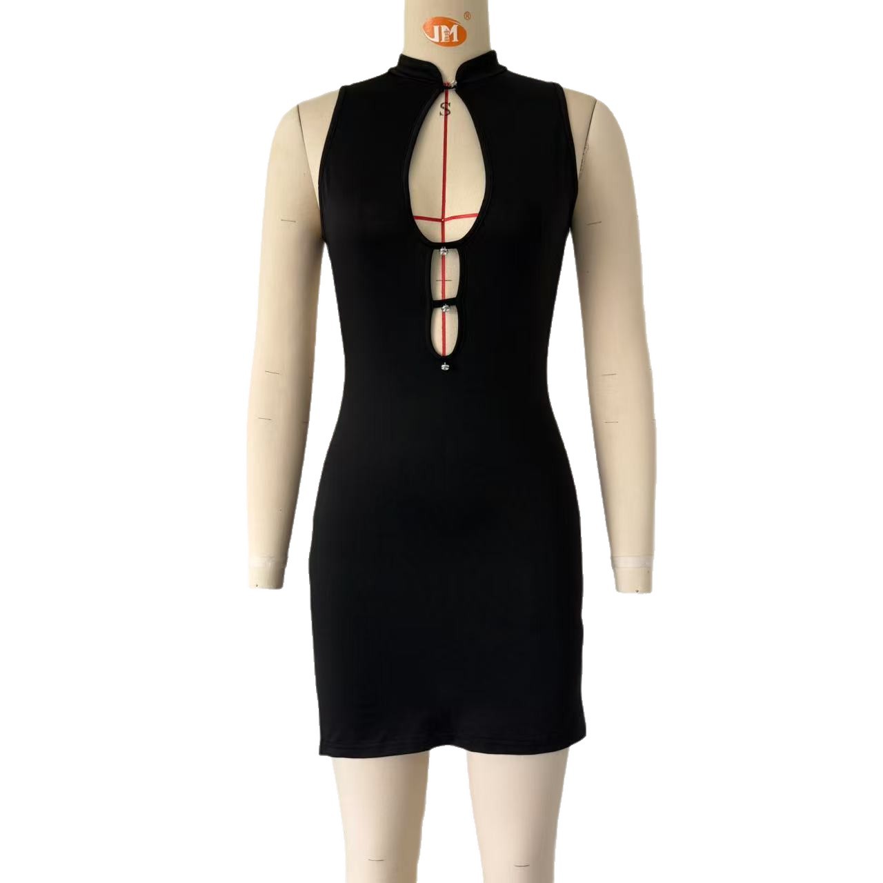 Women Solid Color Sexy Hollow Out Cutout out Backless Sleeveless Slim Fit Hip Split Sexy Dress Women