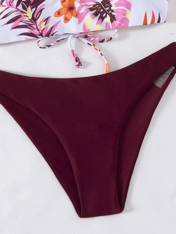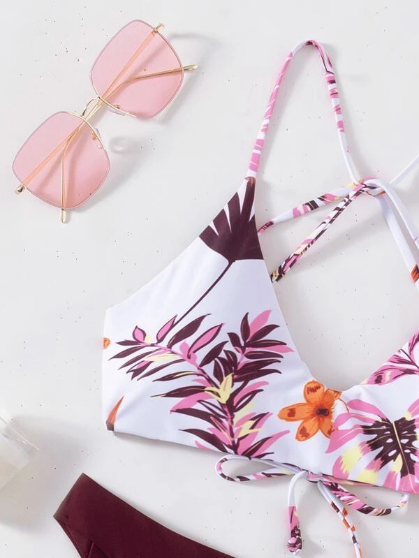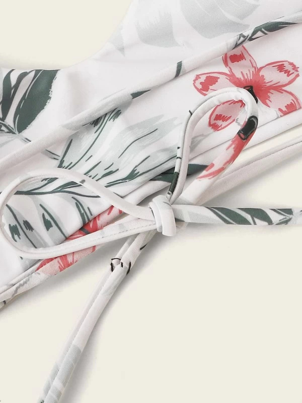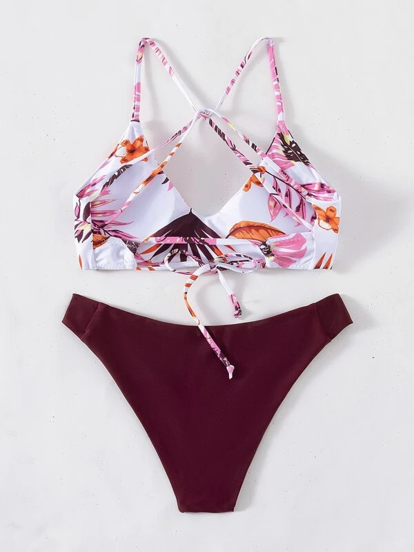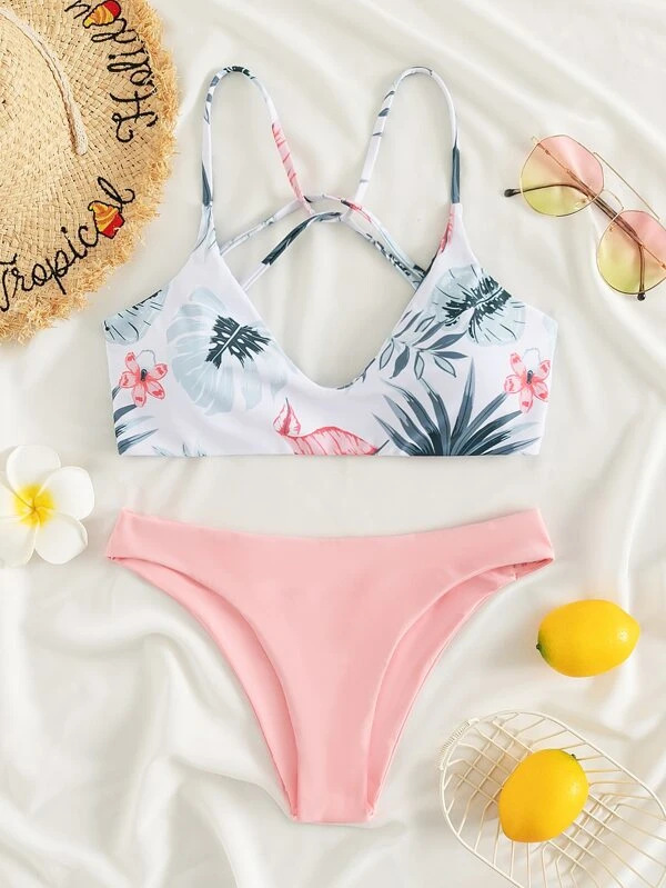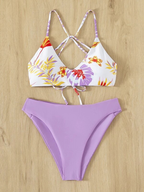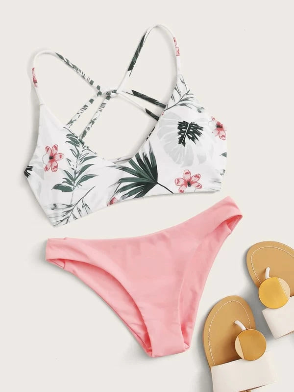 Traje de baño de bikini con estampado floral cruzado y abertura en forma de U, traje de baño decorativo con marea para nadar