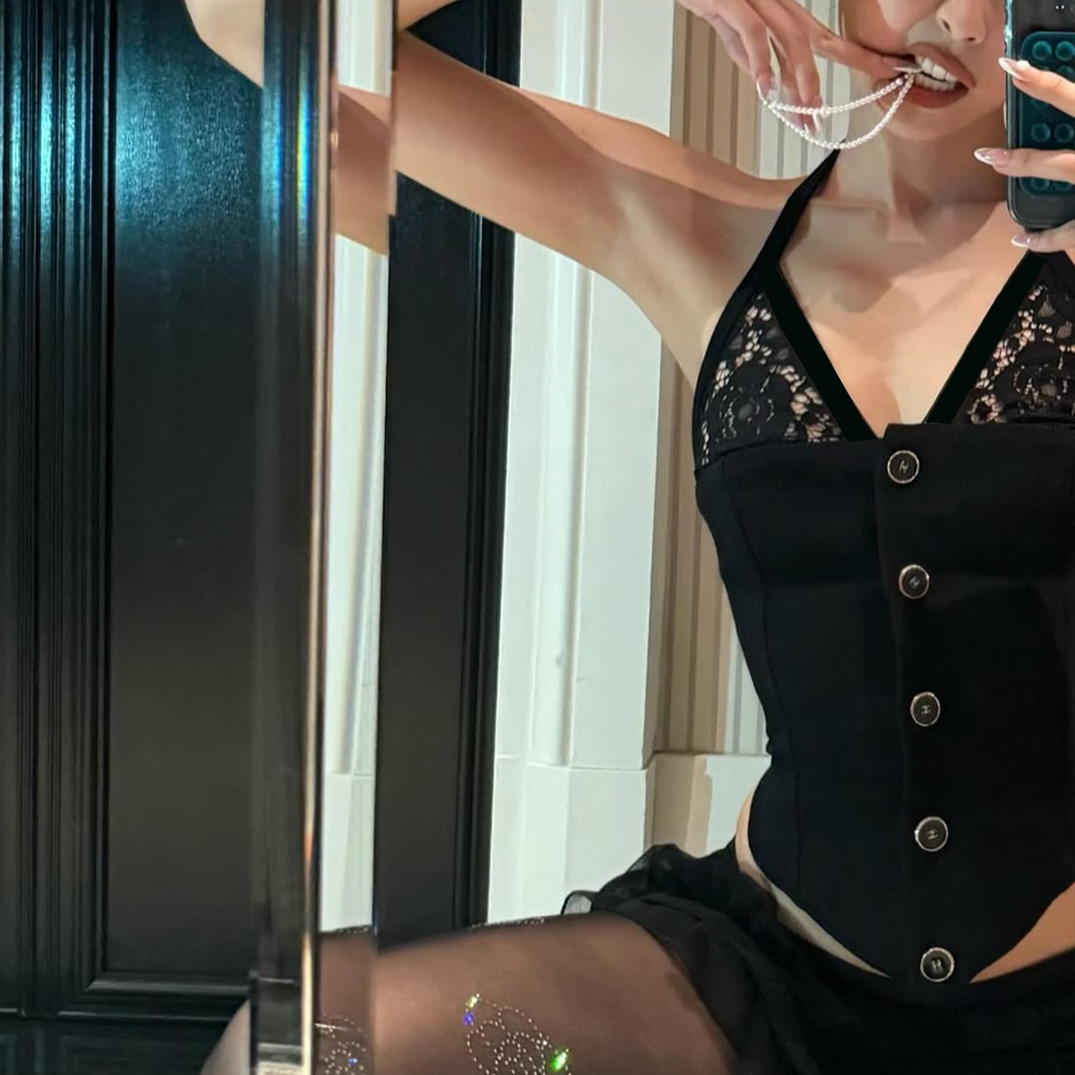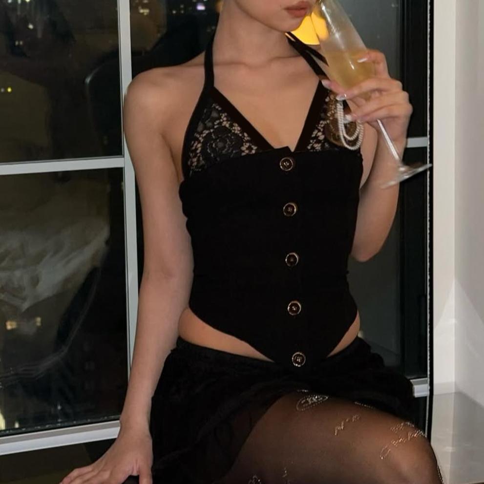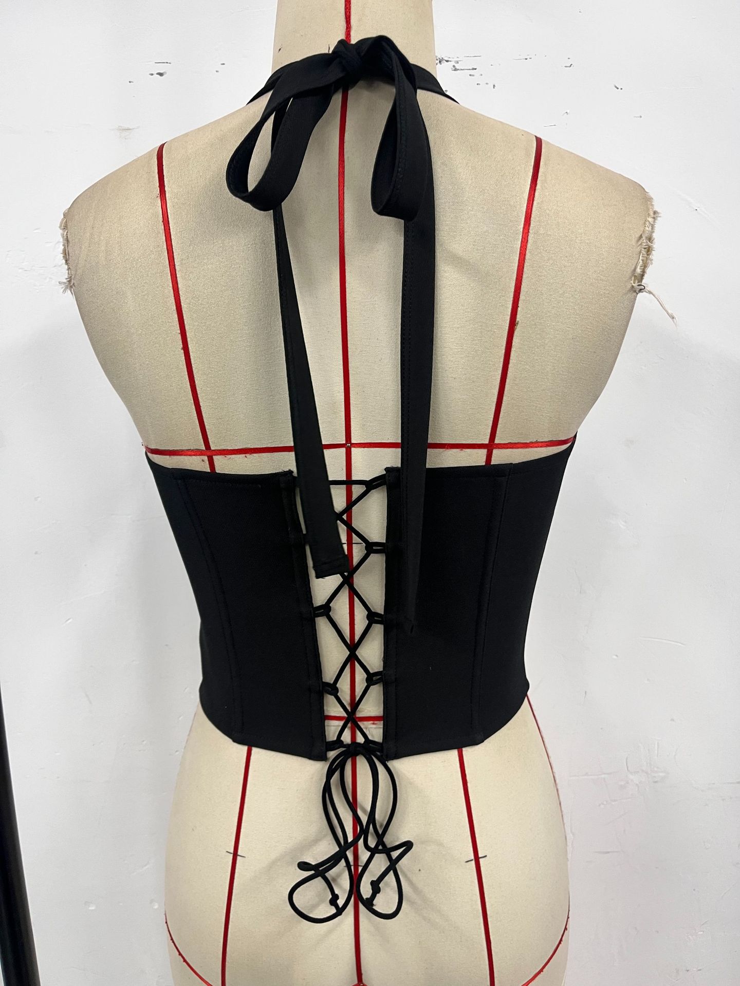 Celebrity Women Clothing French Halter Lace up Backless Boning Corset Vest