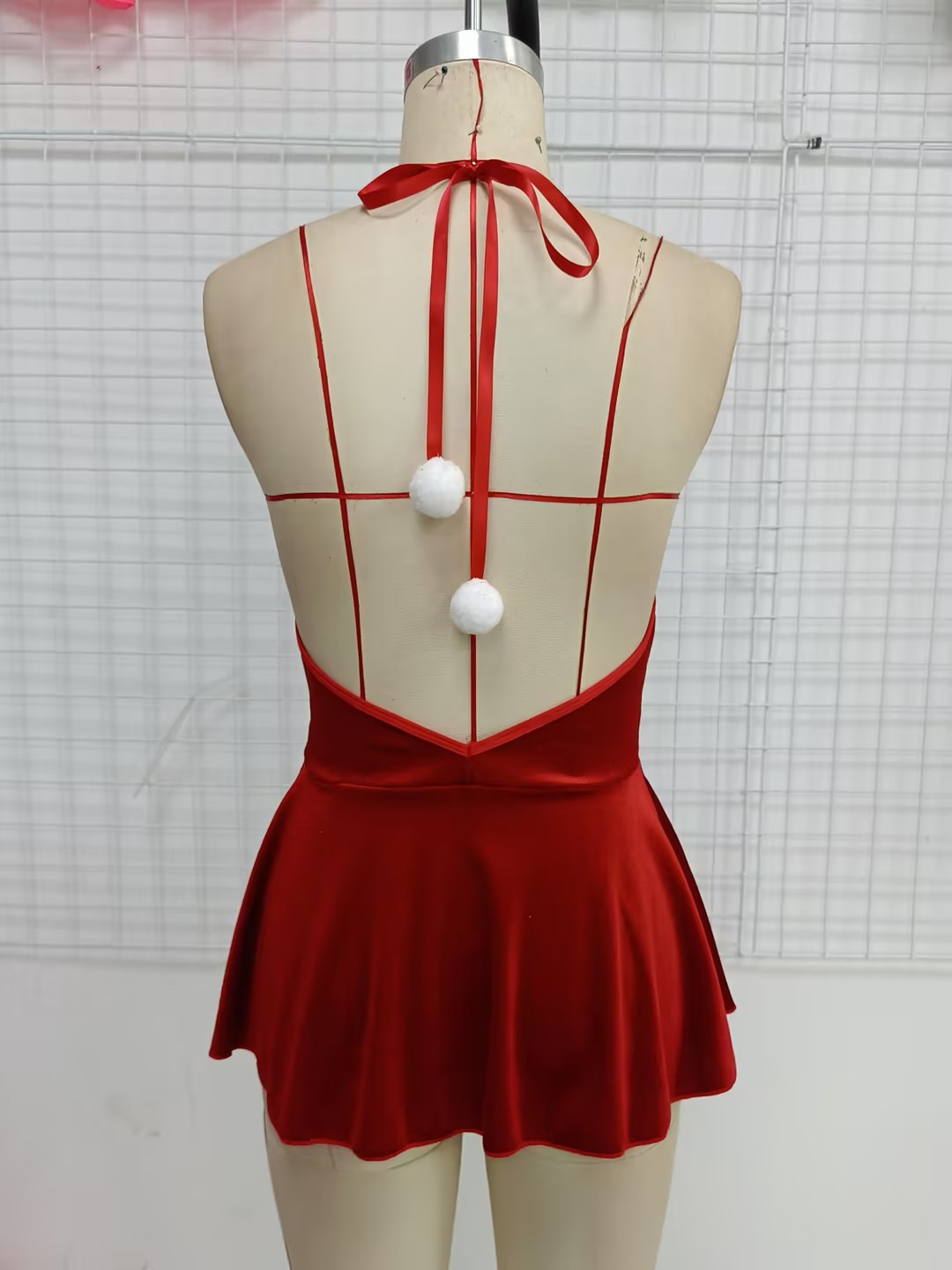 Lencería sexy navideña, uniforme de rol, vestido de seducción sexy con tirantes