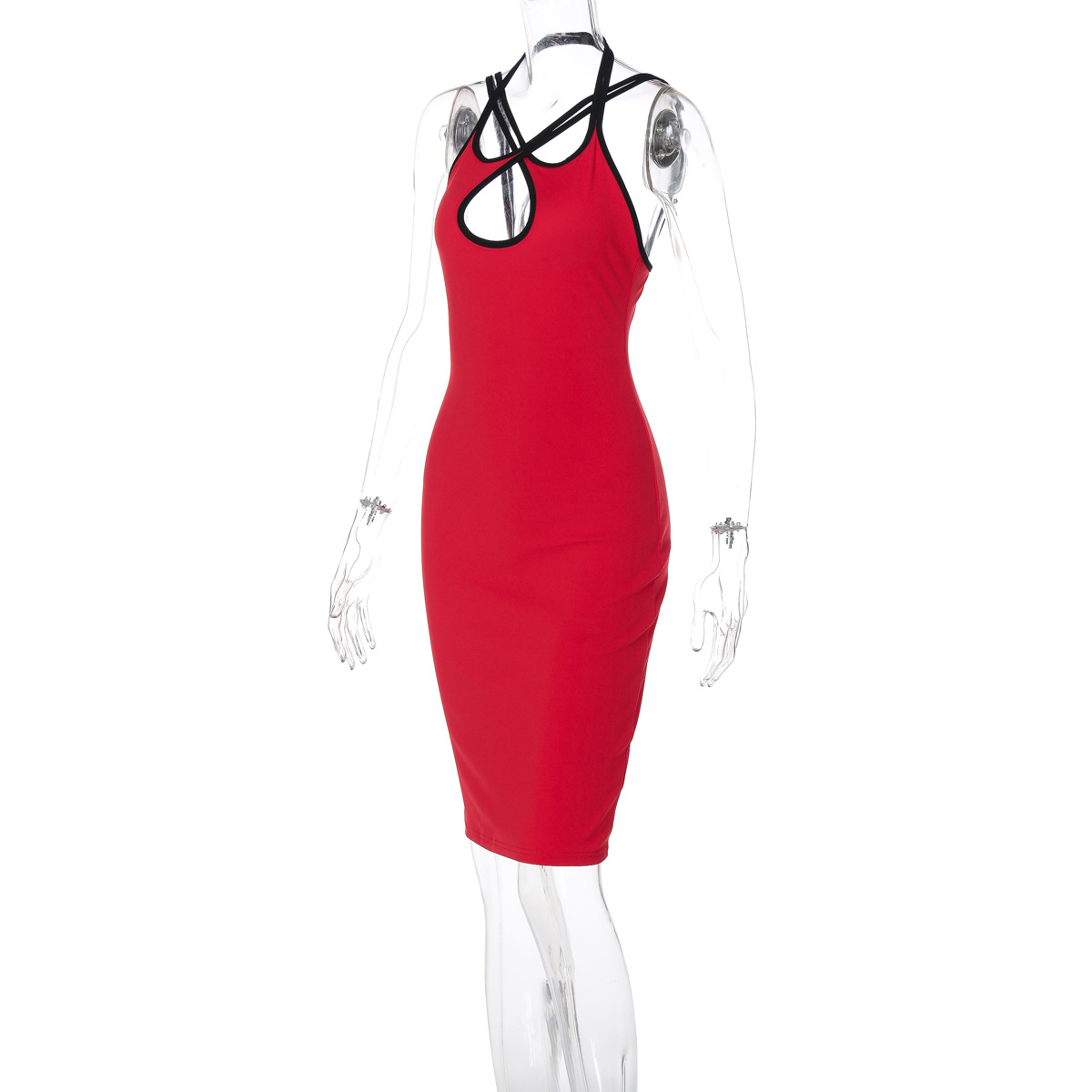 Vestido ajustado con corte ahuecado y contraste de color para mujer, ropa de primavera, cuello halter, espalda descubierta, cordones en la cadera