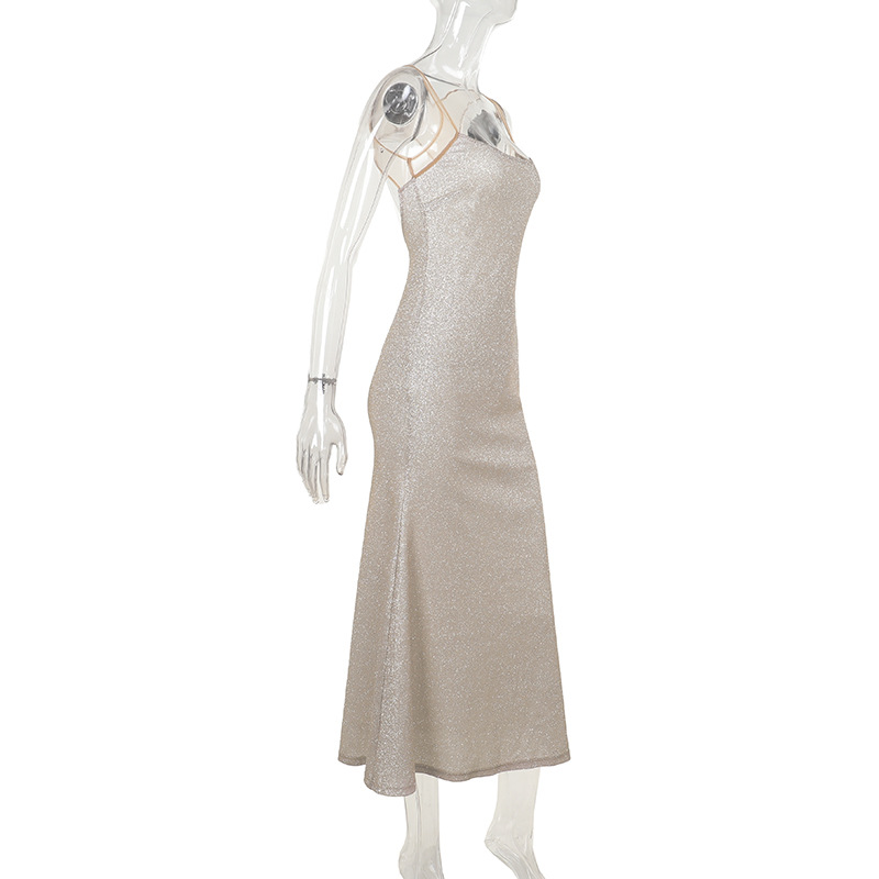 Vestido camisola brillante de diseño para mujer, vestido sexy ajustado a la cadera.