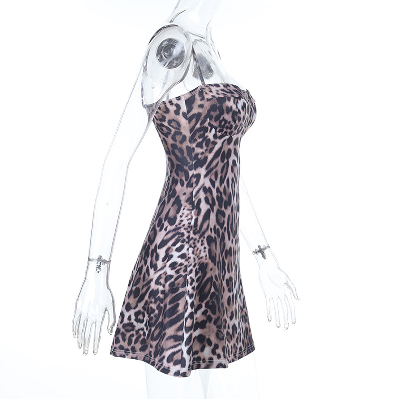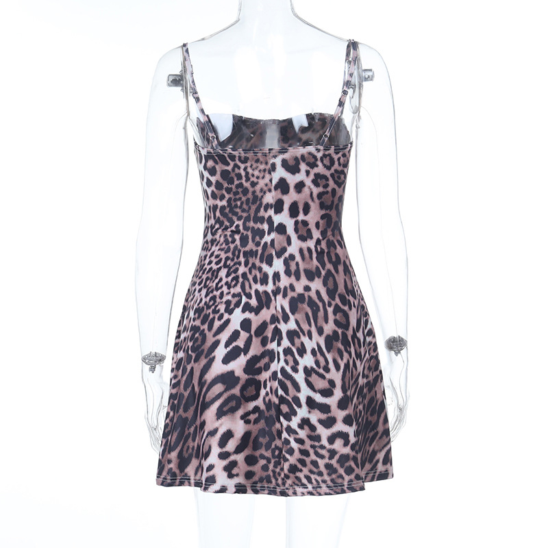 Vestido elegante y sexy con tirantes finos y estampado de leopardo para verano