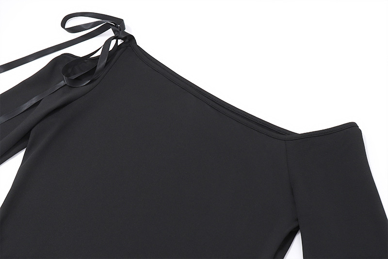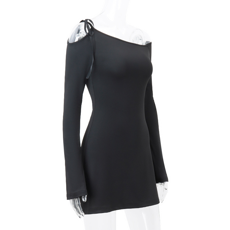 Vestido de otoño para mujer, sexy, con cuello diagonal, hombros descubiertos, elegante, con costuras anudadas y manga larga.
