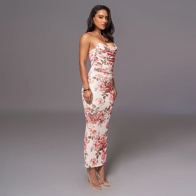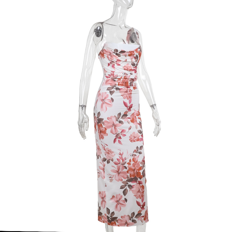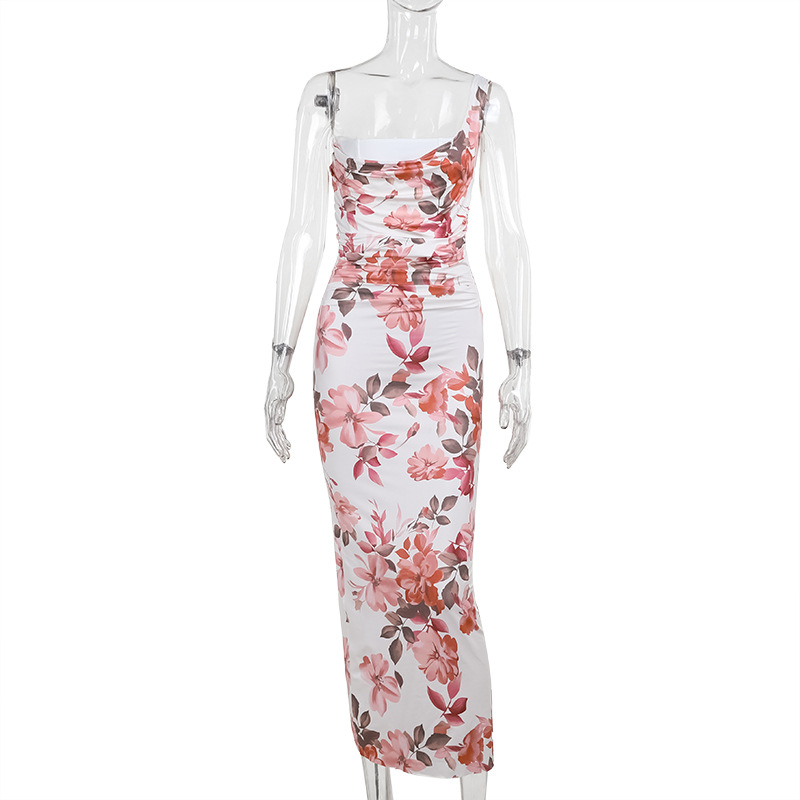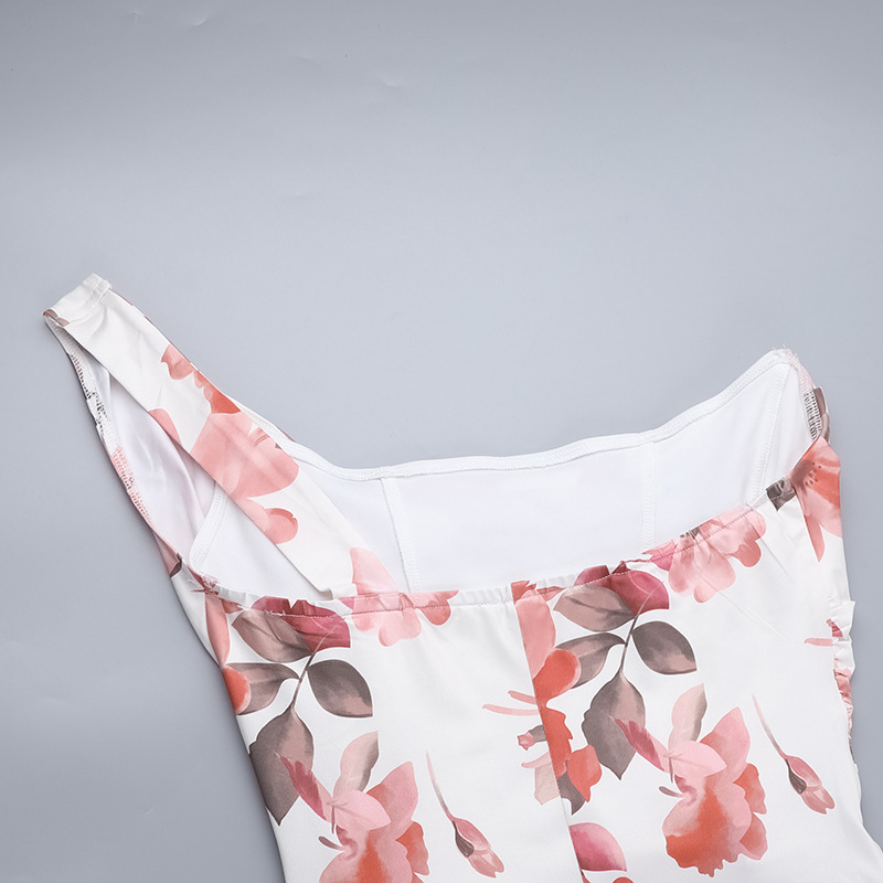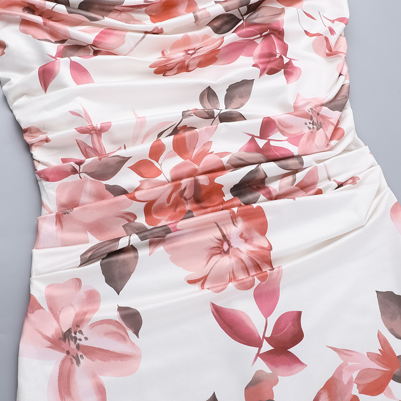 Vestido ajustado de verano con tirantes y un solo hombro y estampado de moda