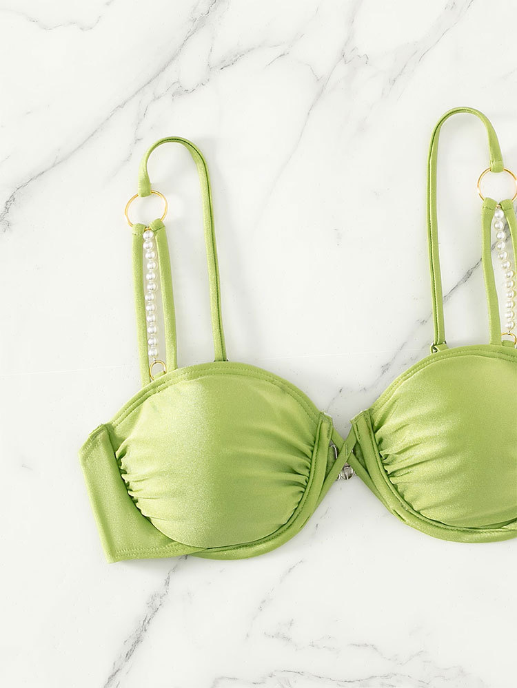 Traje de baño de playa con push-up y parte superior de bikini de color sólido, sexy y fresco, sin forro y con soporte de acero