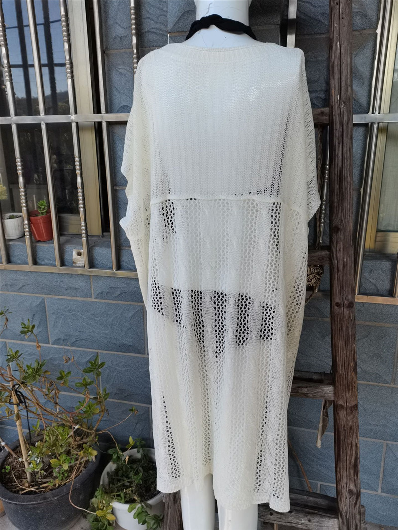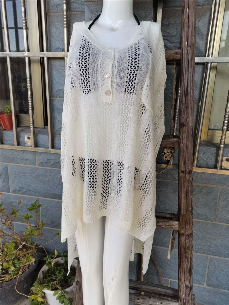 Blusa de playa de punto con botones y recortes sexys para protegerse del sol durante las vacaciones.