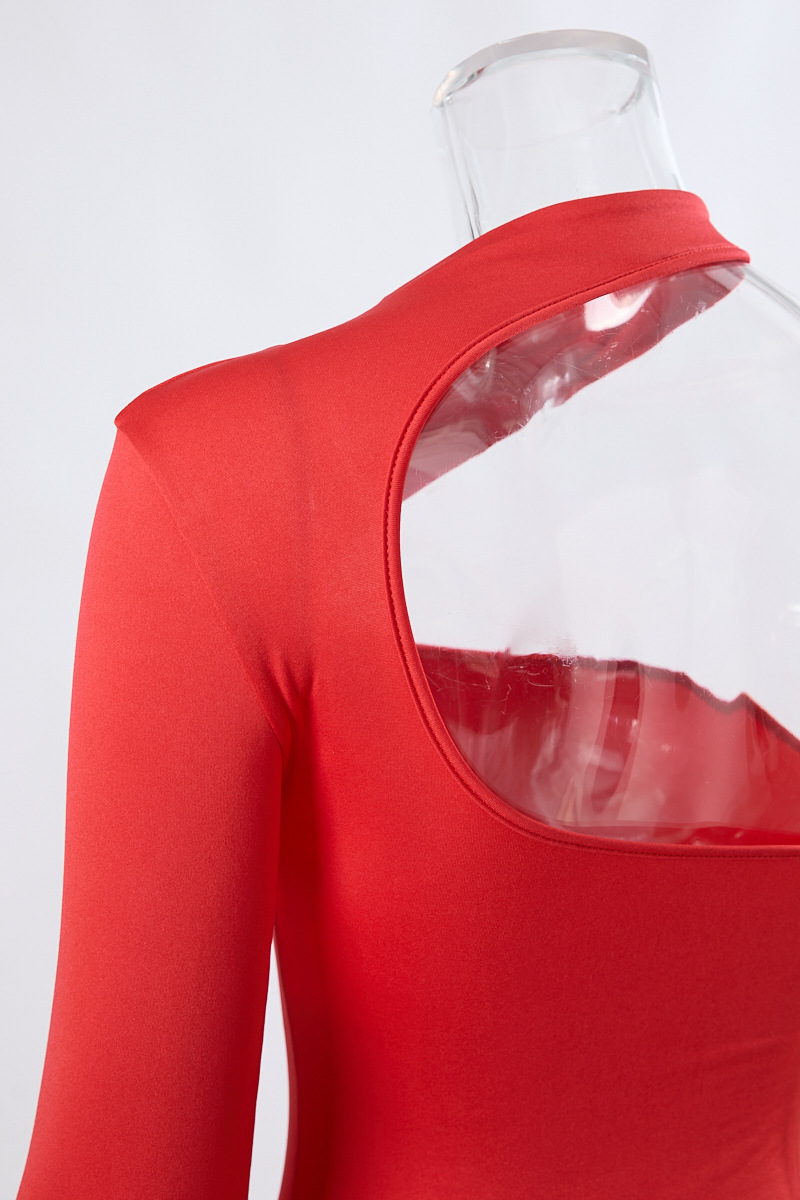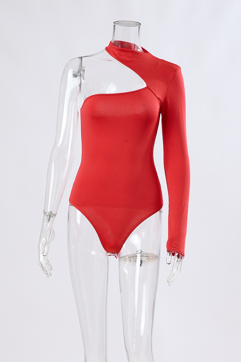 Mono de manga larga sexy ajustado con hombros descubiertos que favorece la figura. Camiseta de tirantes para mujer.