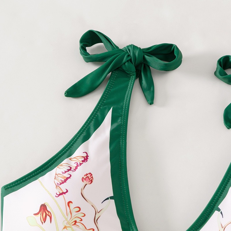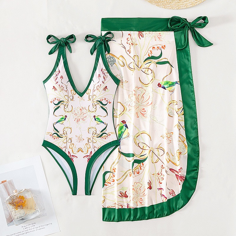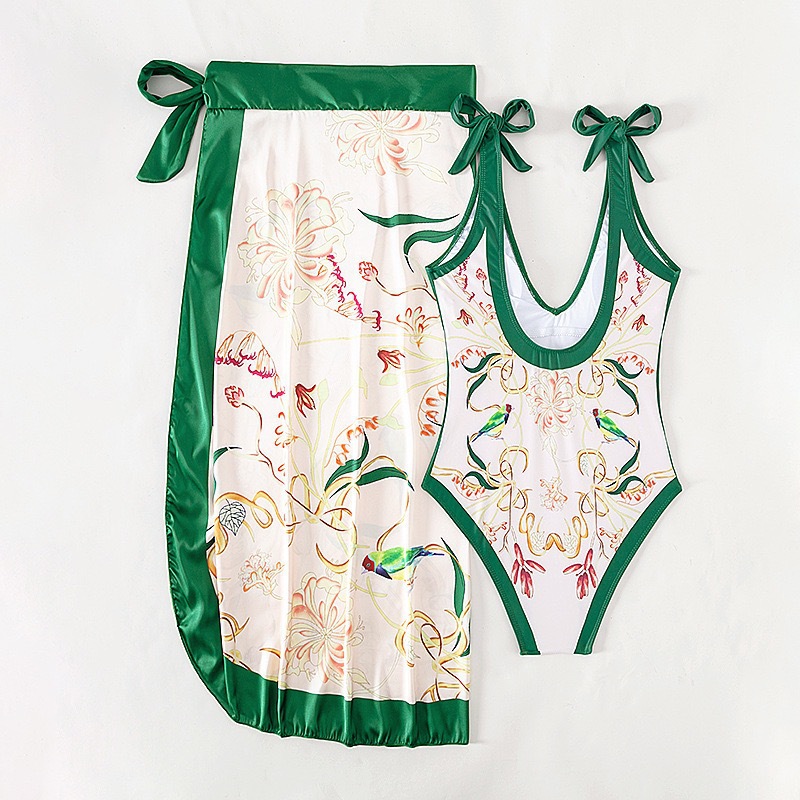 Bikini de una pieza adelgazante de gasa retro, vestido largo, protector solar, traje de baño de dos piezas con estampado retro