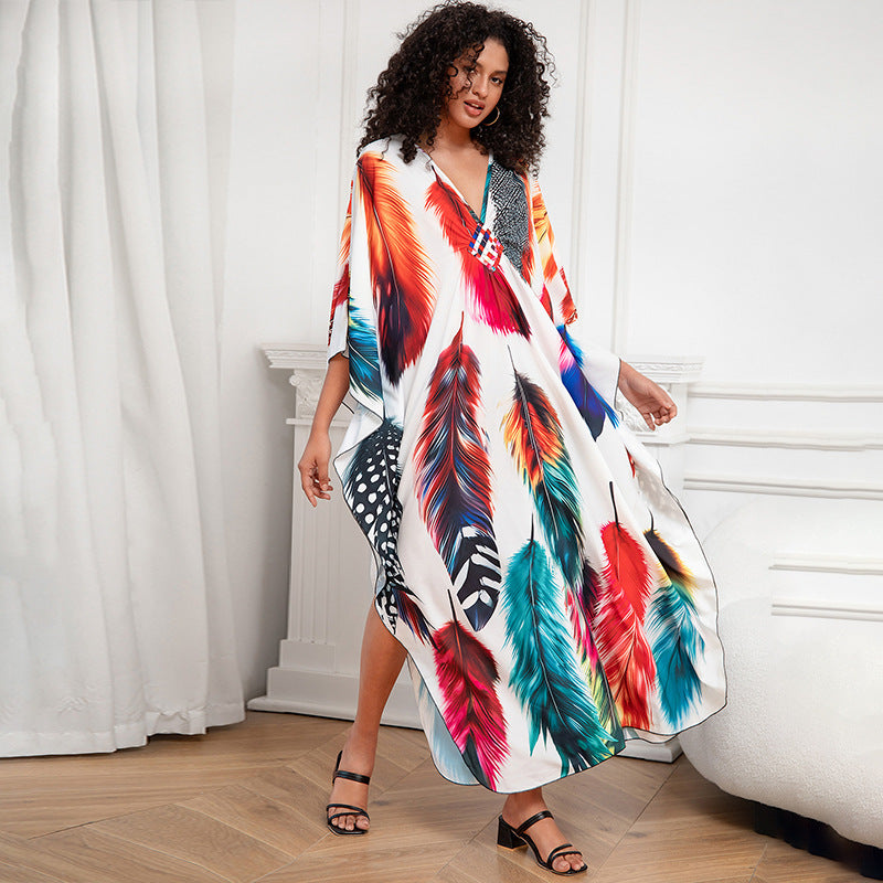 Bata holgada de talla grande para playa, para vacaciones, con estampado de posicionamiento, para mujer
