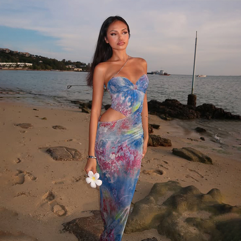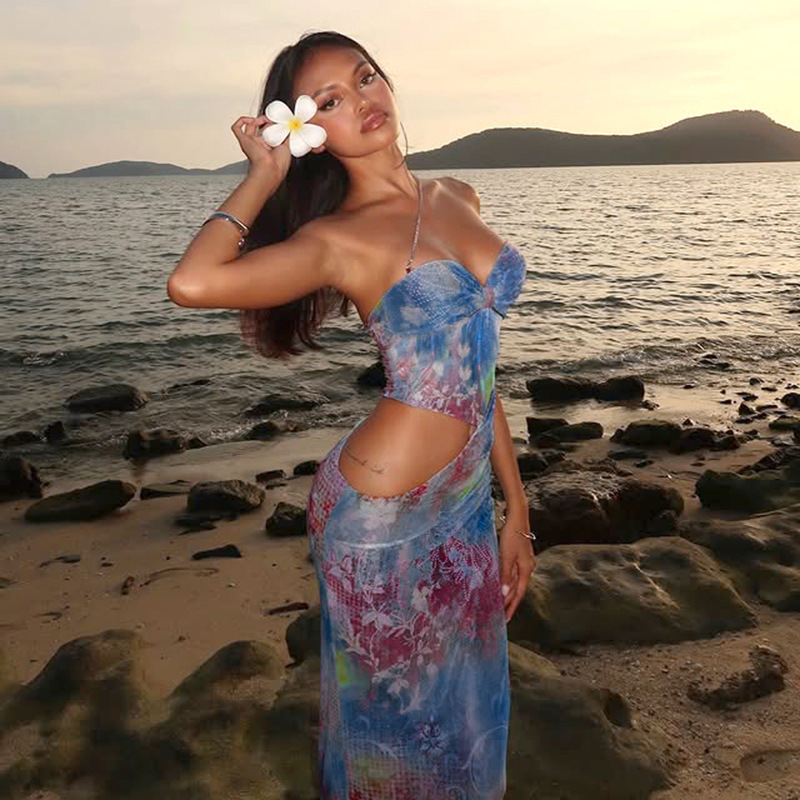 Top de tubo sexy de verano con abertura en la cintura y estampado para mujer