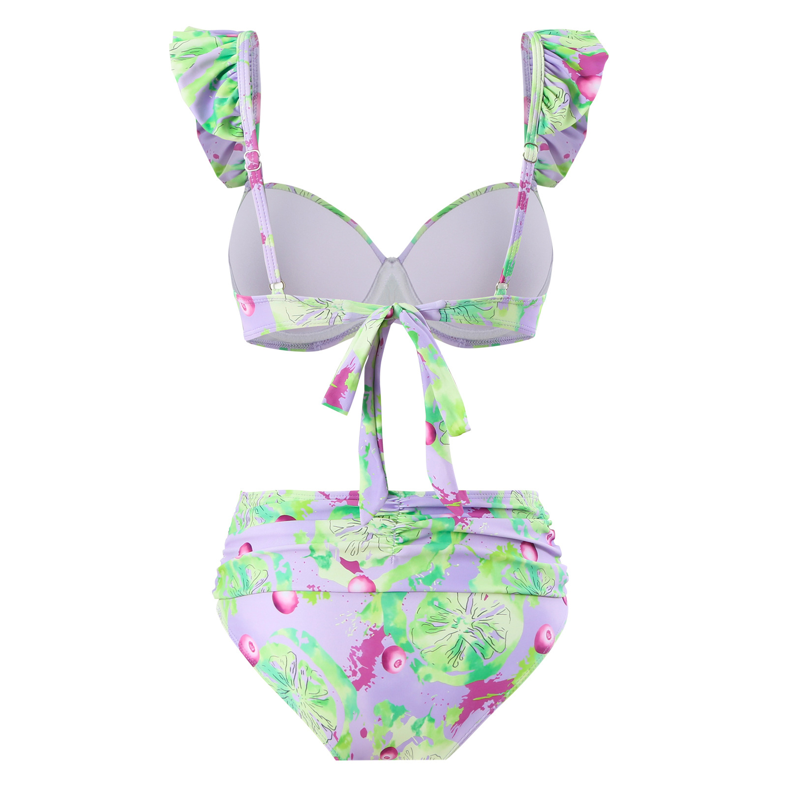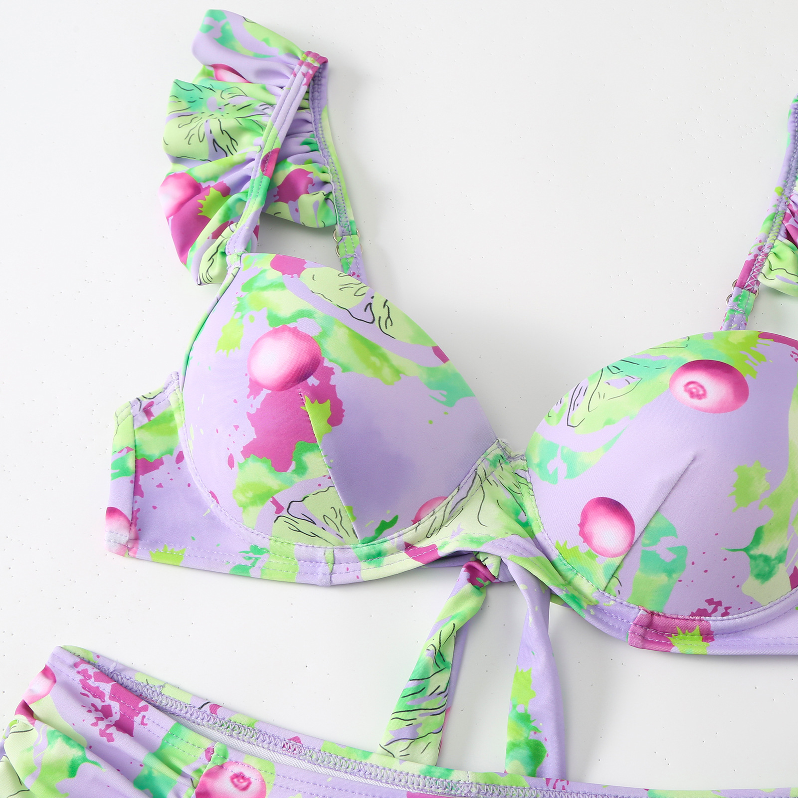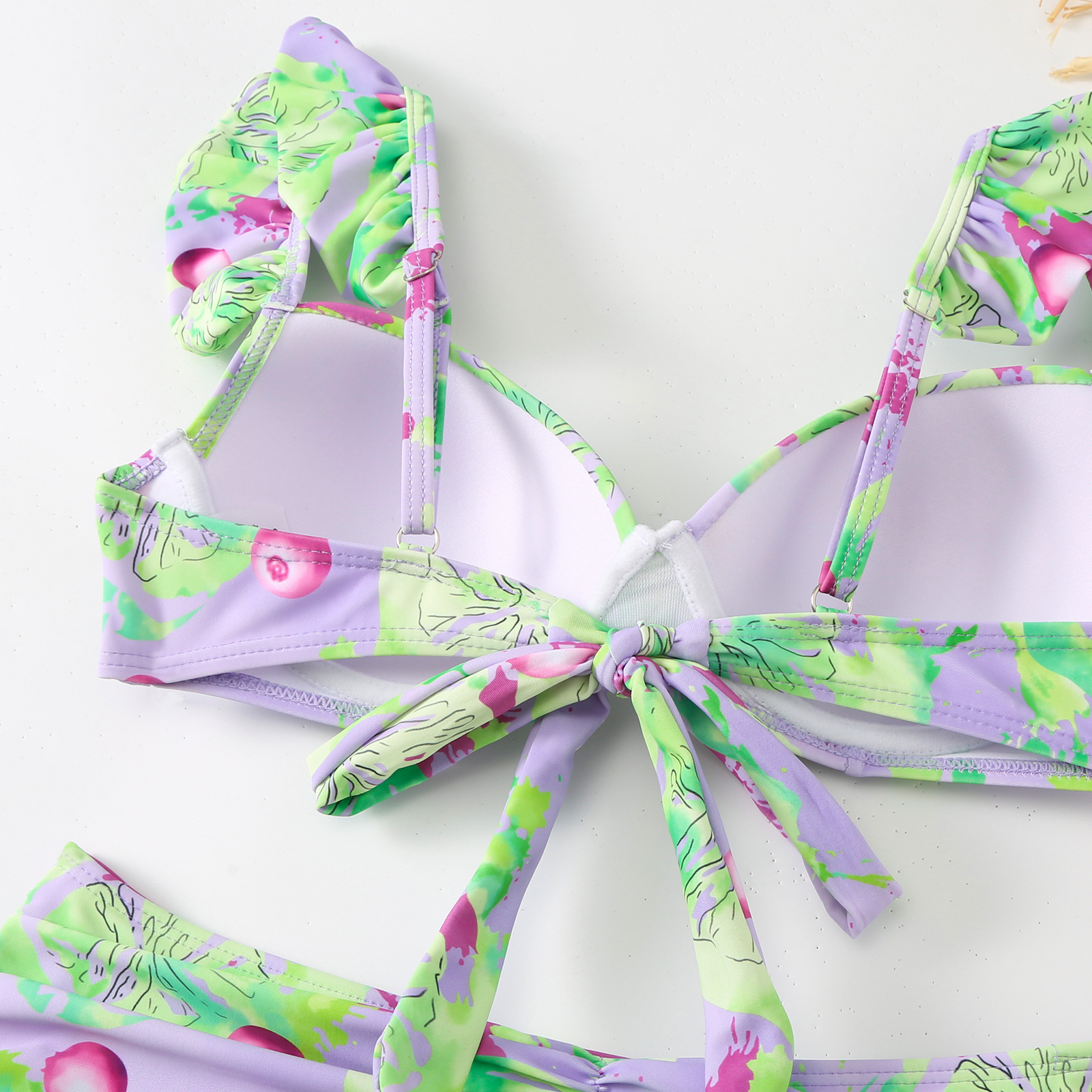 Conjunto de traje de baño de tres piezas con abertura y realce, sexy, para vacaciones de primavera, estampado