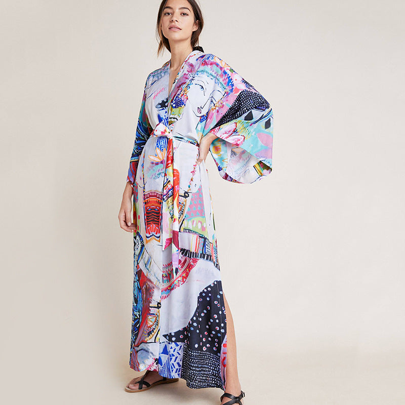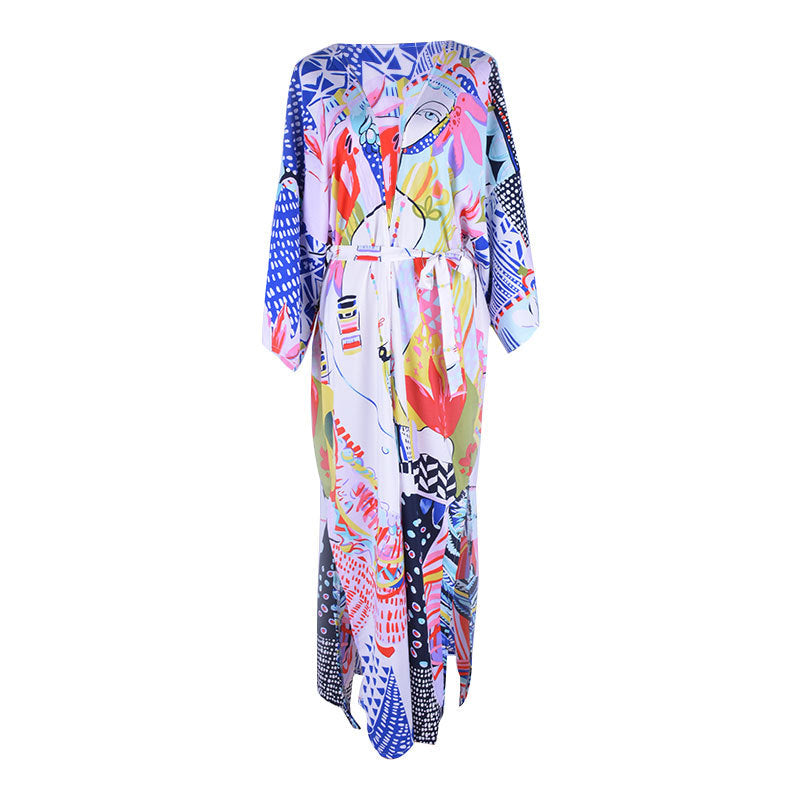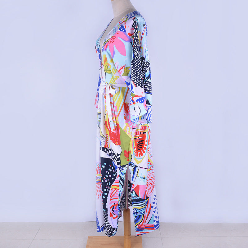 Cárdigan de playa de longitud media con estampado de rayón, protector solar, para playa, para cubrirse, traje de baño, ropa exterior, chal