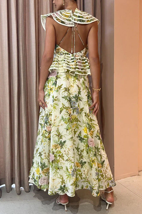 Vestido sexy con espalda descubierta, estampado, con cordones y vuelo grande para mujer