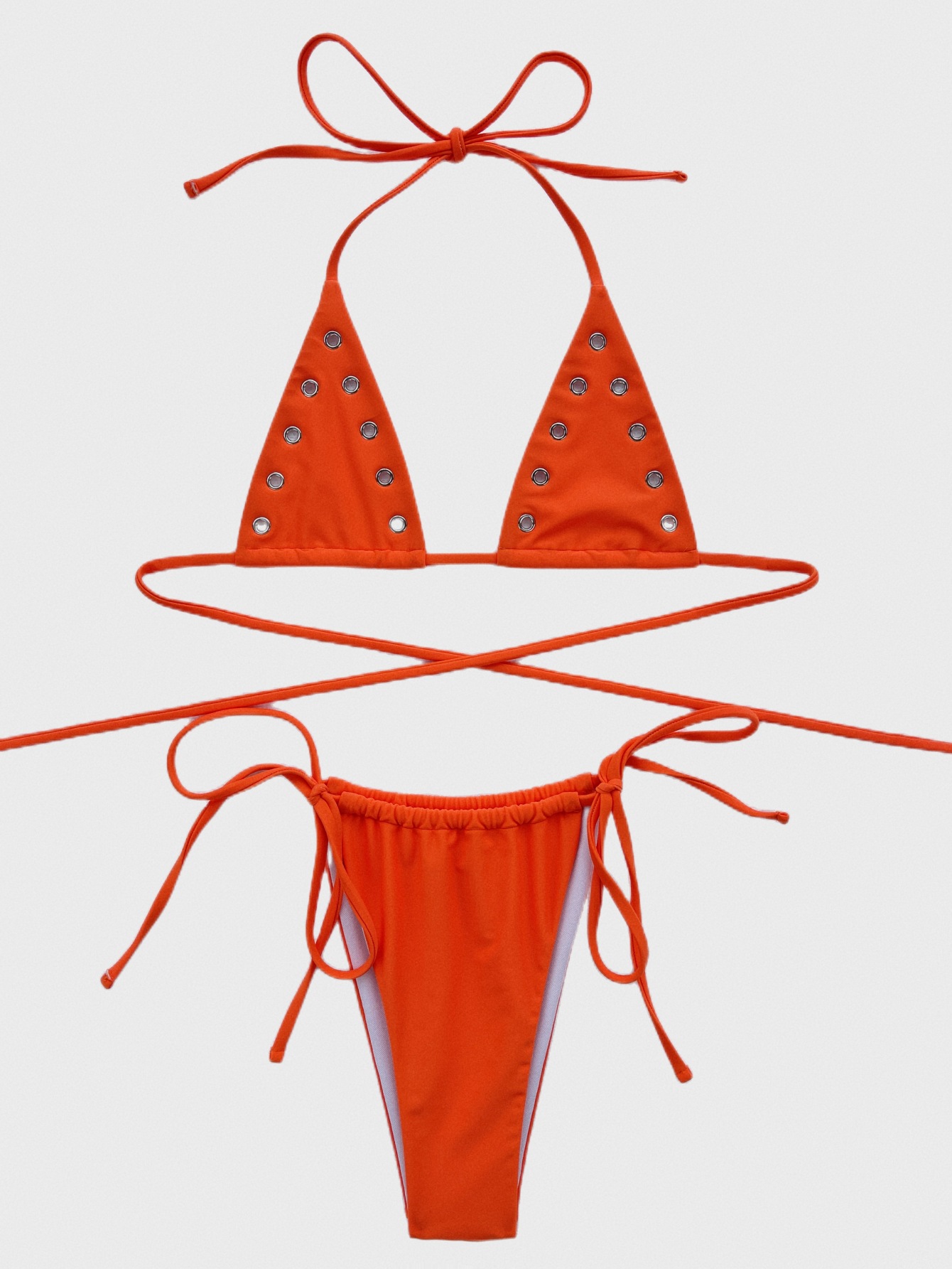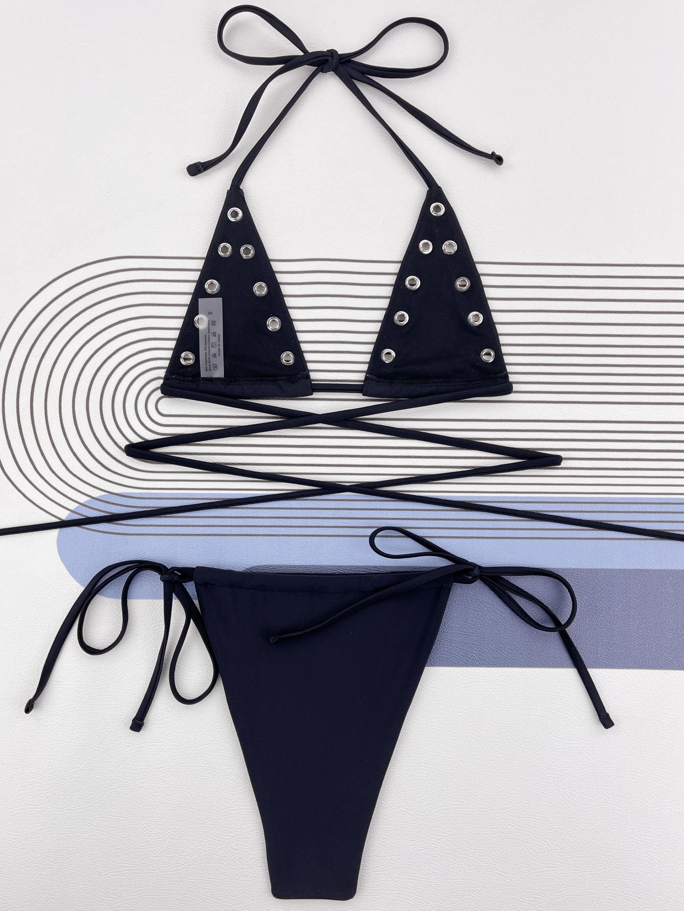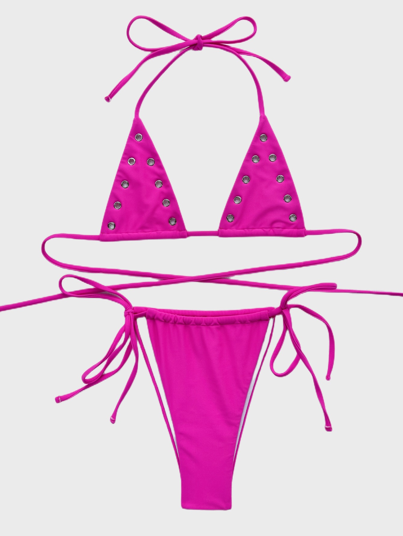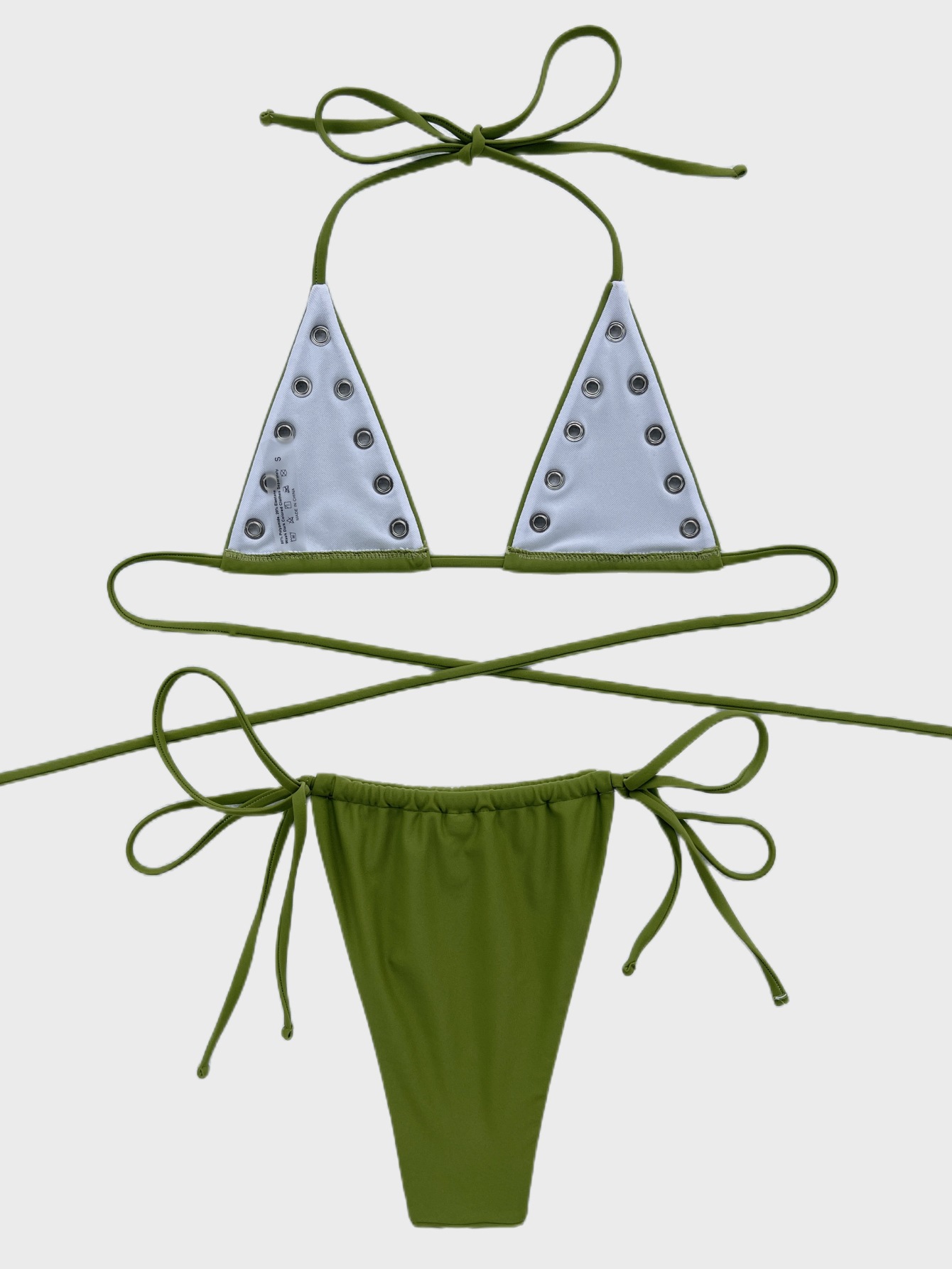 Traje de baño sexy con micro triángulo y ojales de bikini