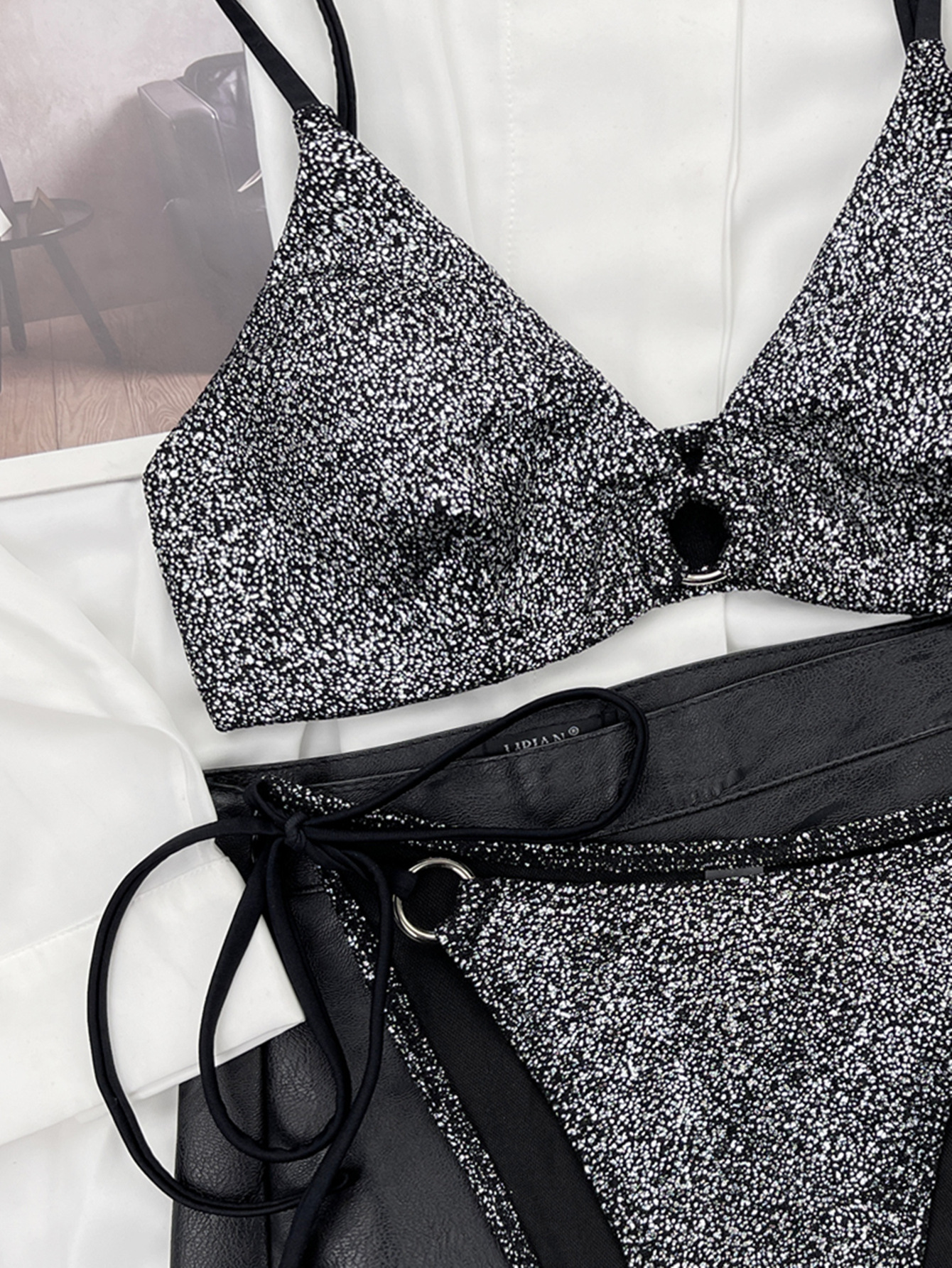 Traje de baño sexy de tela de lentejuelas con cordón de bikini dividido