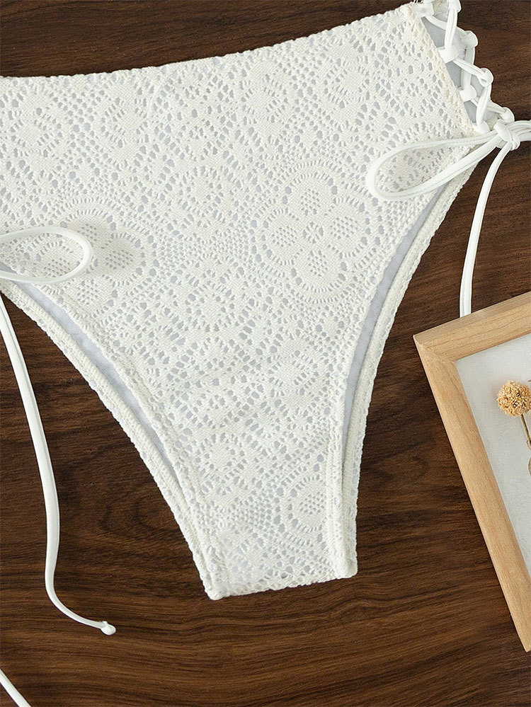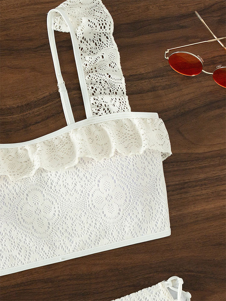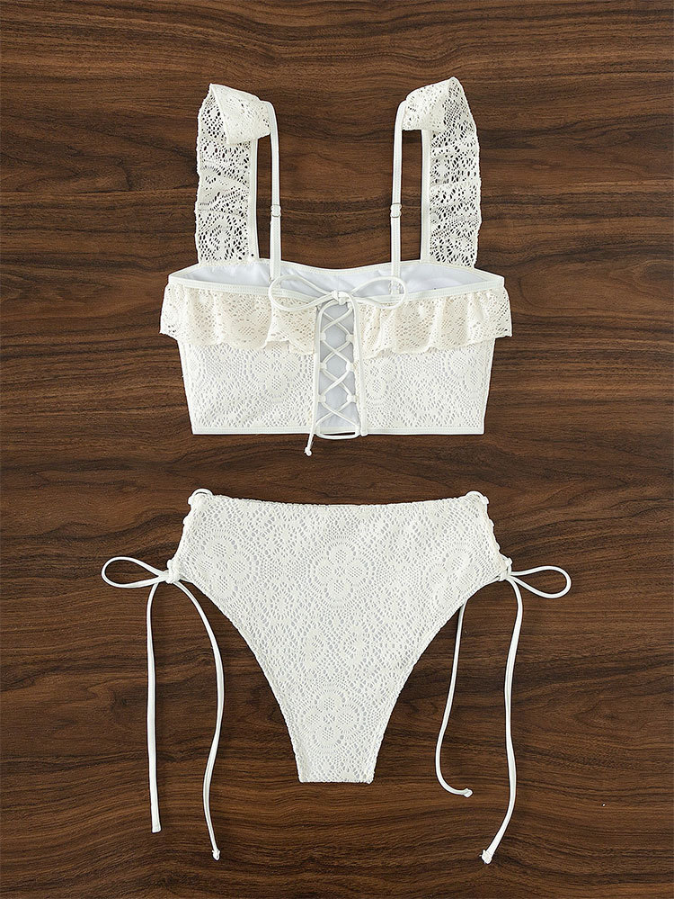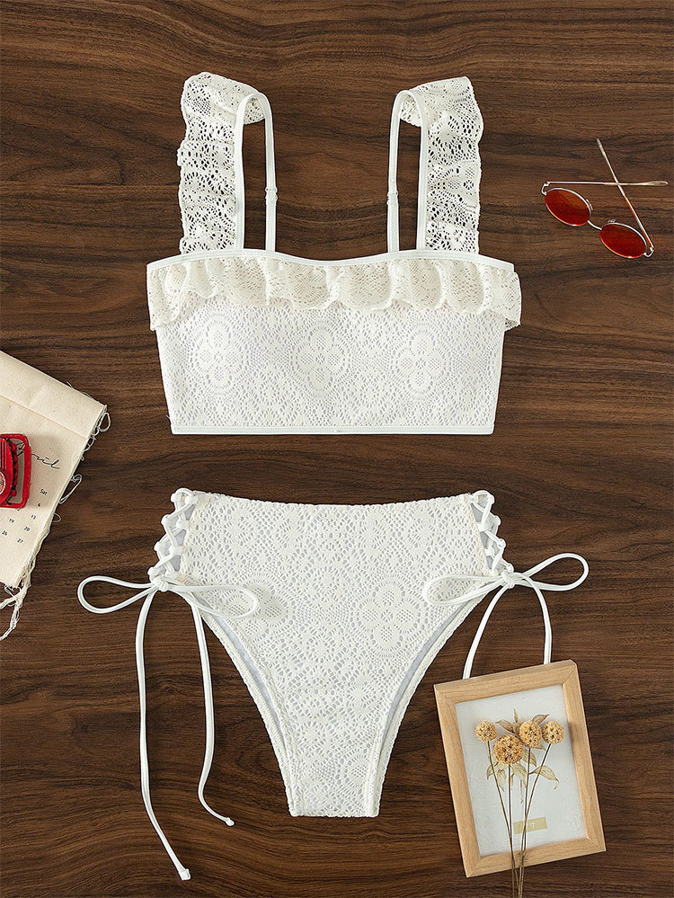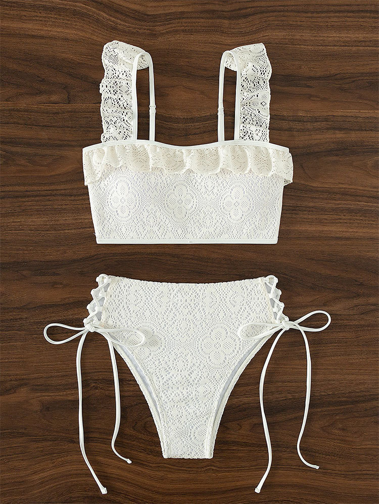 Bikini sexy de tubo para mujer, color liso, con borde volador, cintura alta y tirantes divididos.