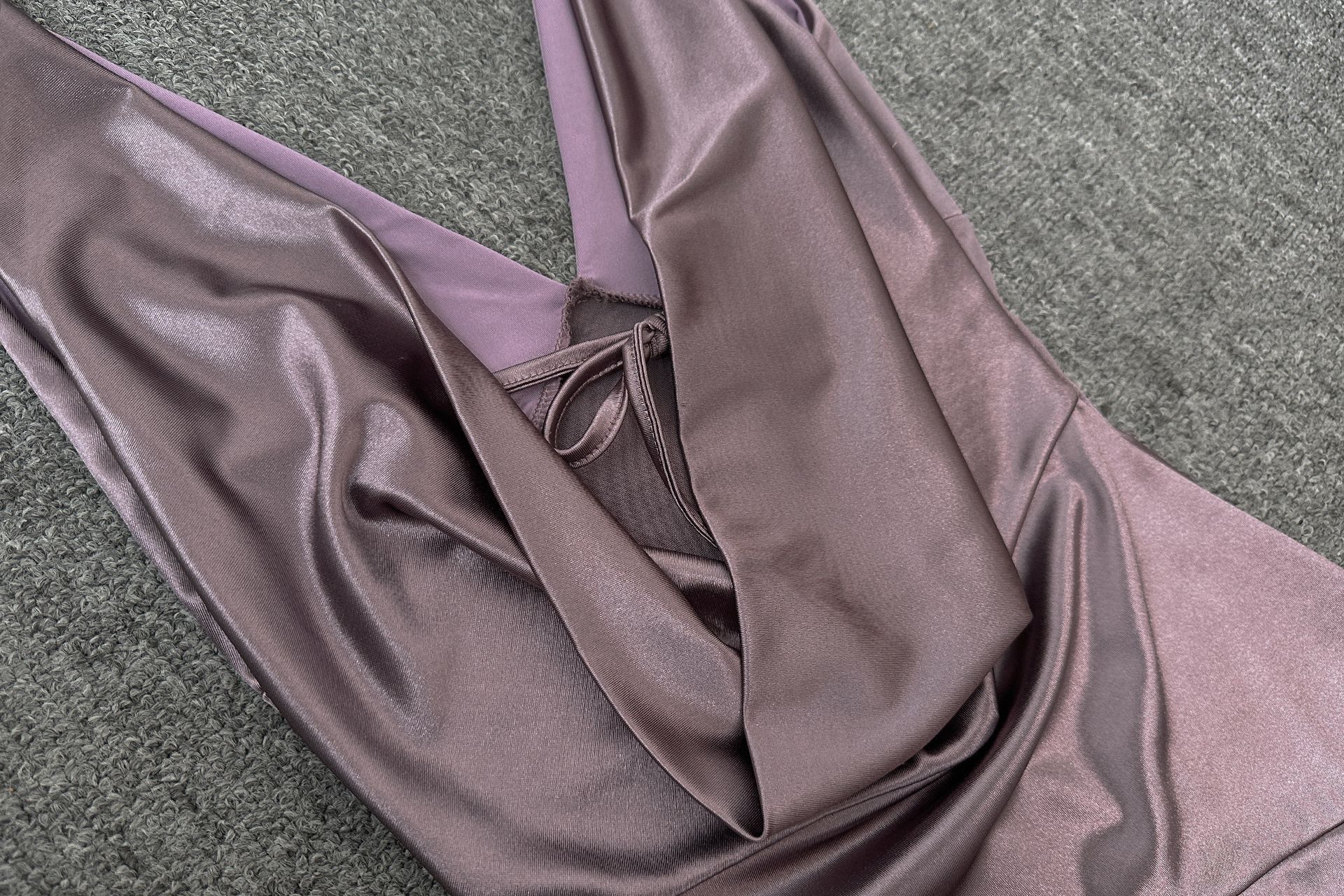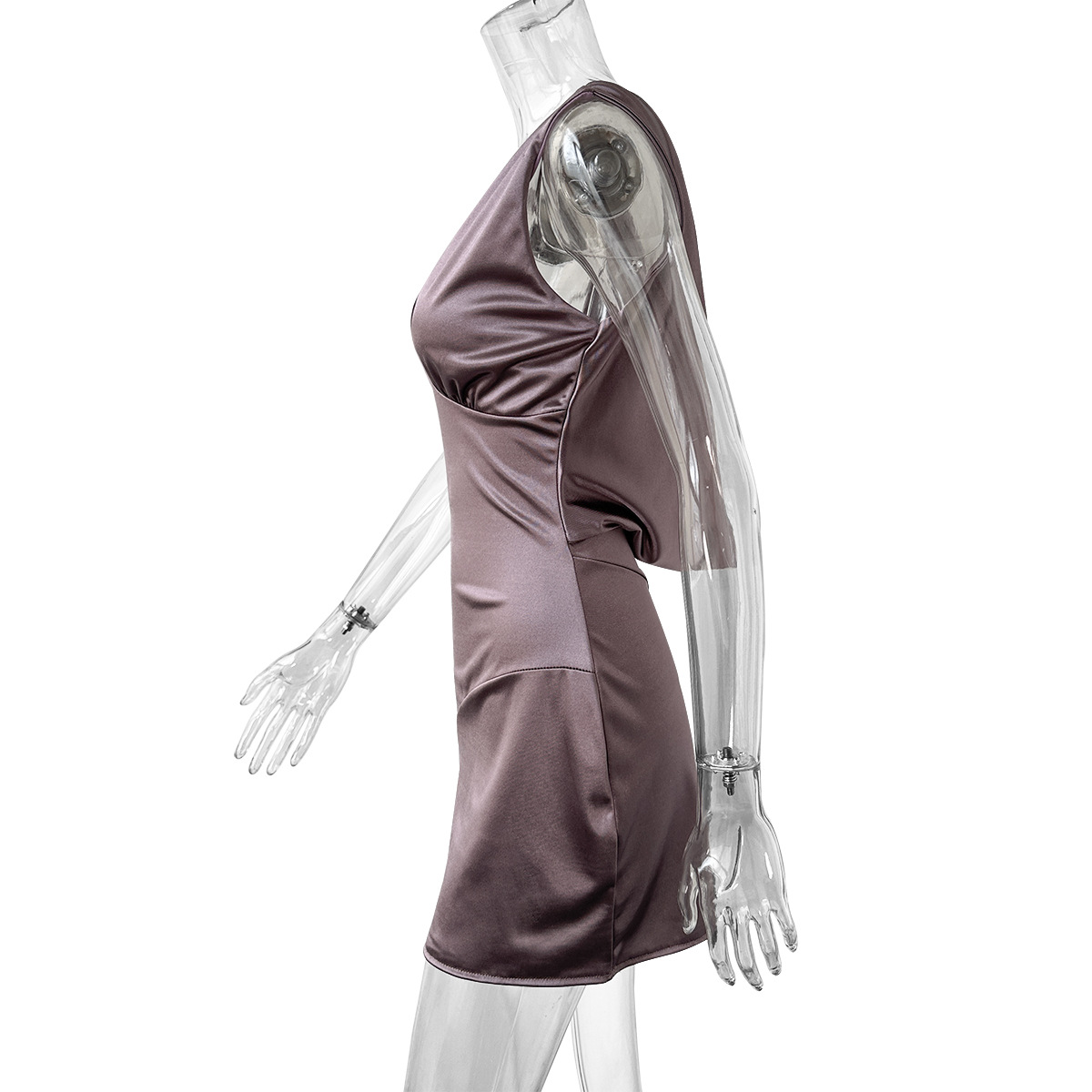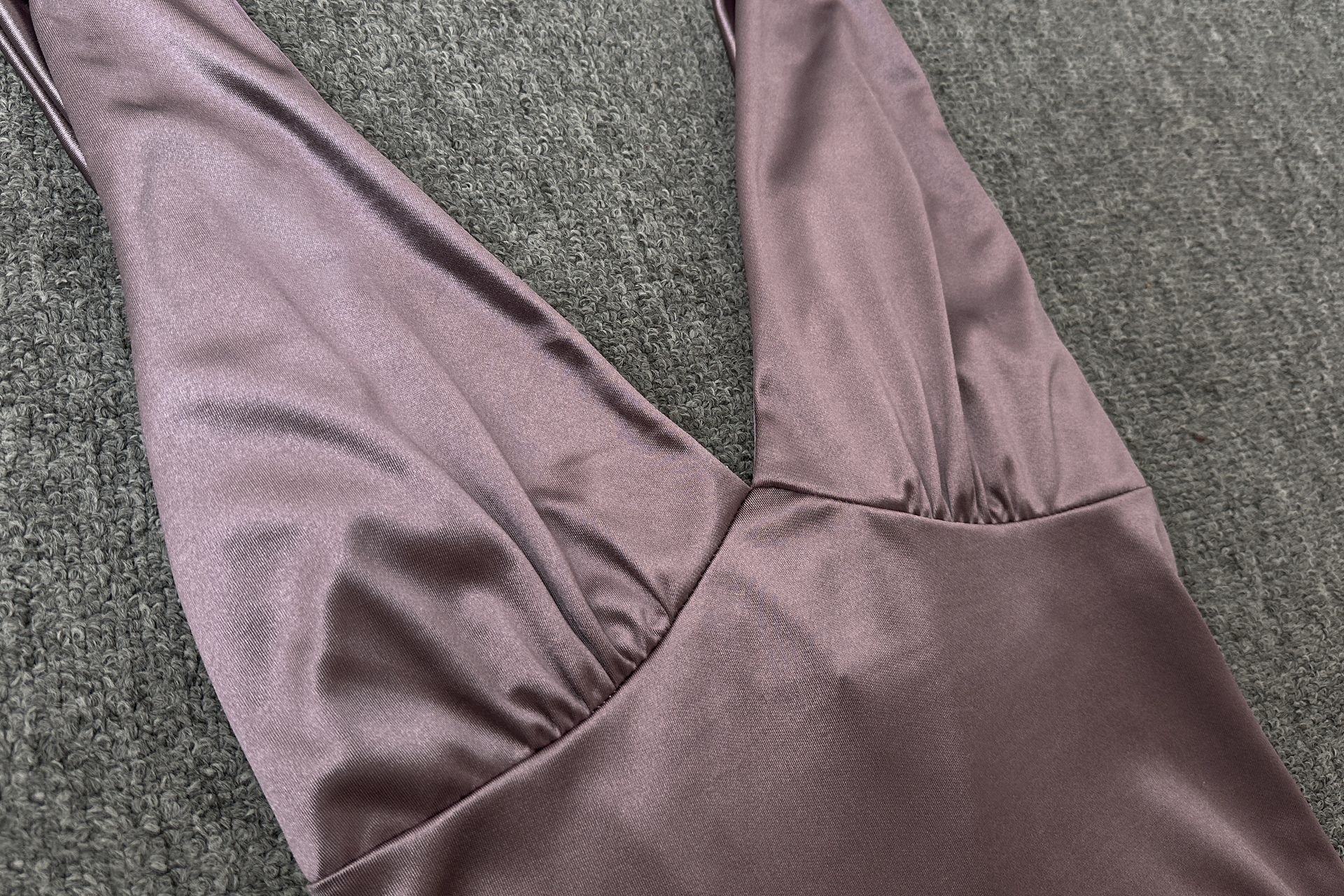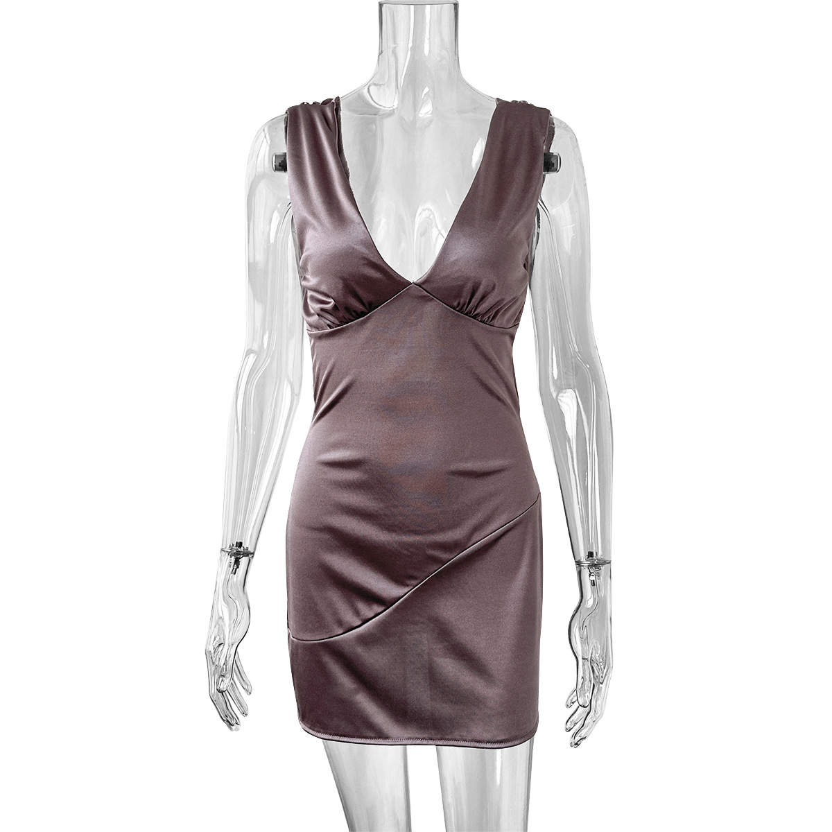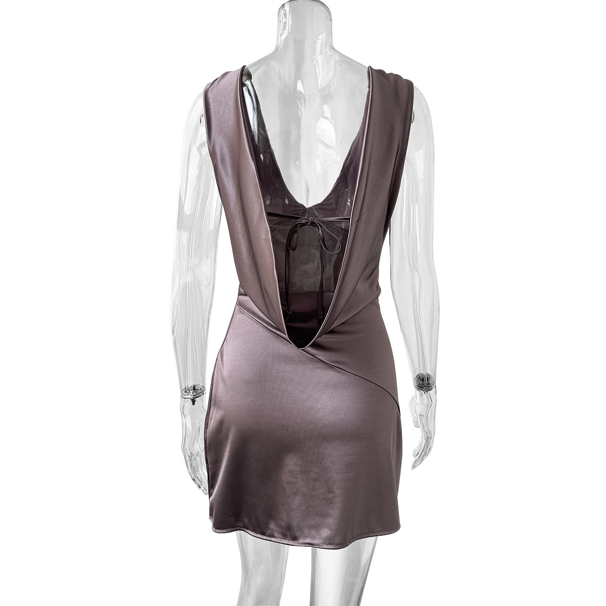 Vestido tubo sexy con escote en V, sin mangas, con aberturas, espalda descubierta y cordones