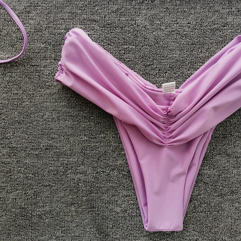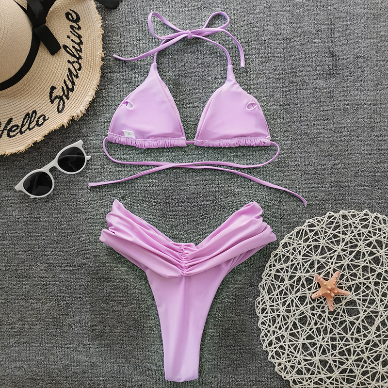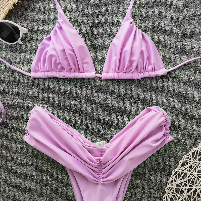 Bikini sexy plisado de color sólido para mujer, traje de baño separado, bikini
