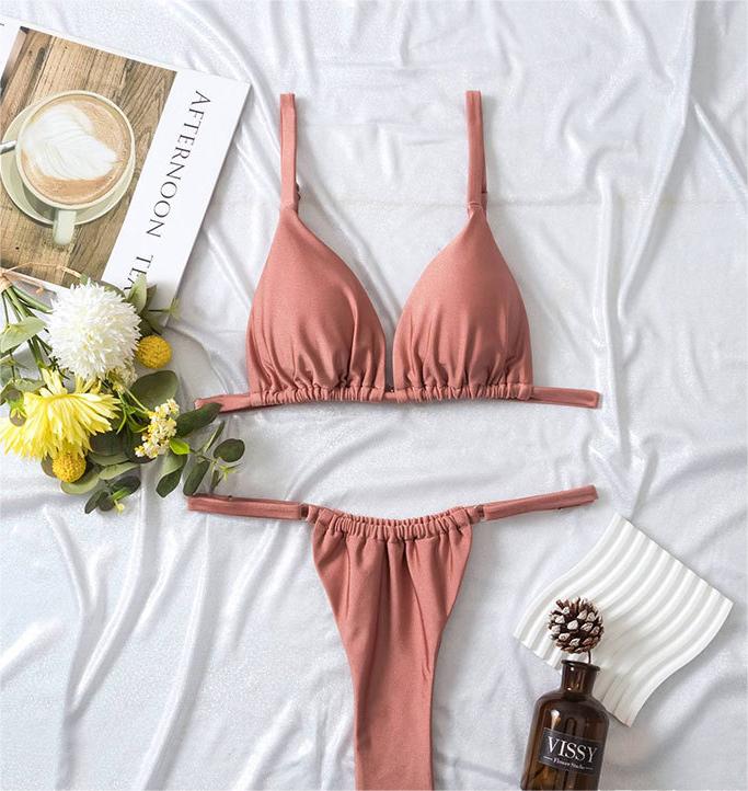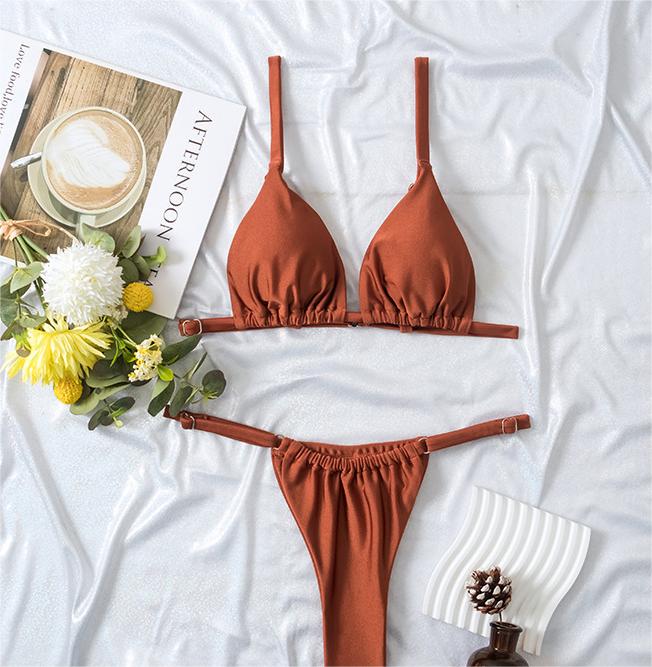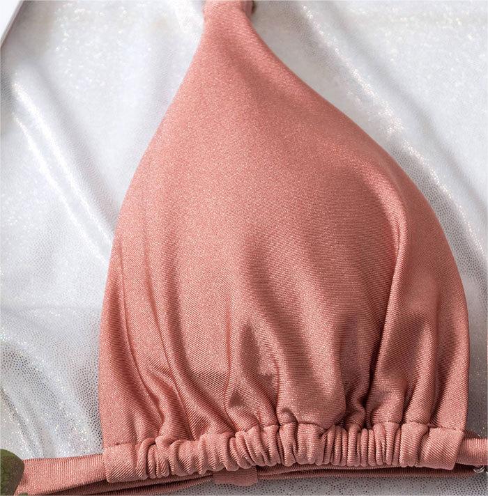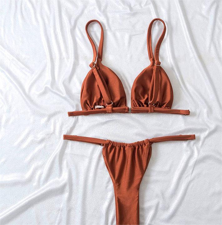 Traje de baño de bikini de triángulo dividido de color sólido para mujer, sexy, con cordones de tres puntos