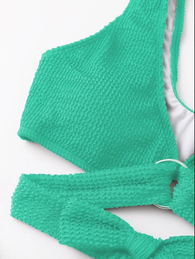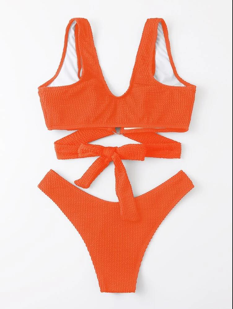 Traje de baño sexy con cordones y bikini de color sólido dividido para mujer