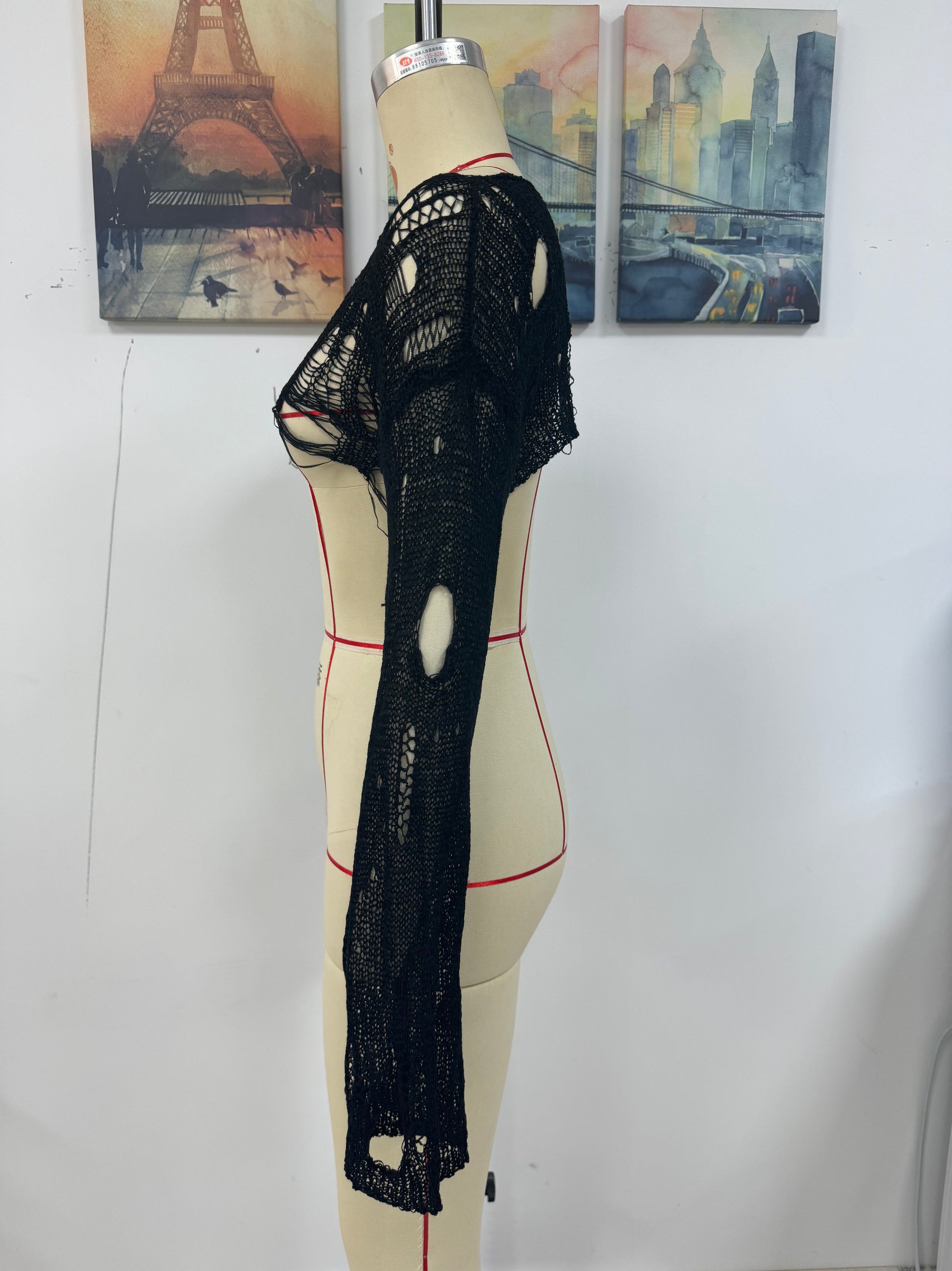 Vestido playero de punto para mujer, de color liso, manga corta acampanada, para primavera y verano