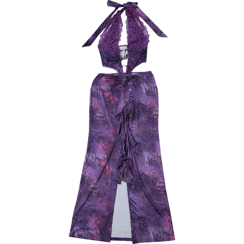 Vestido de dos piezas con cuello en V y encaje halter para mujer, sexy, de primavera