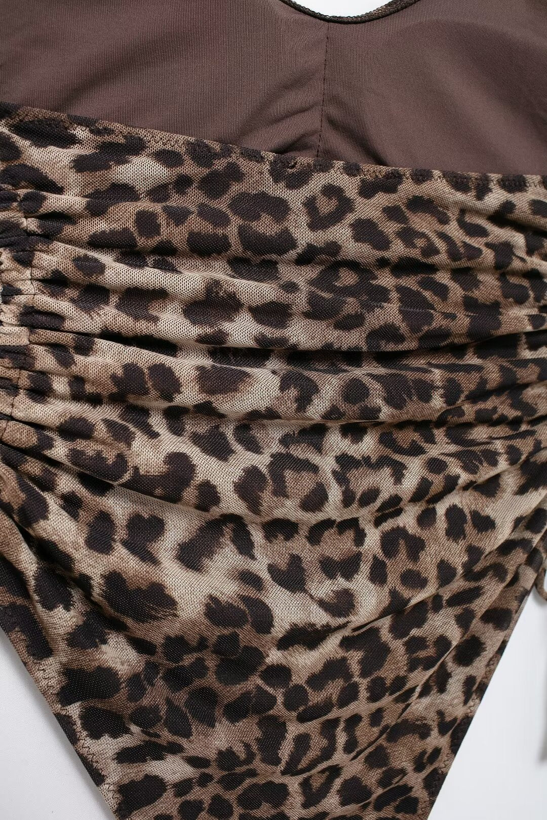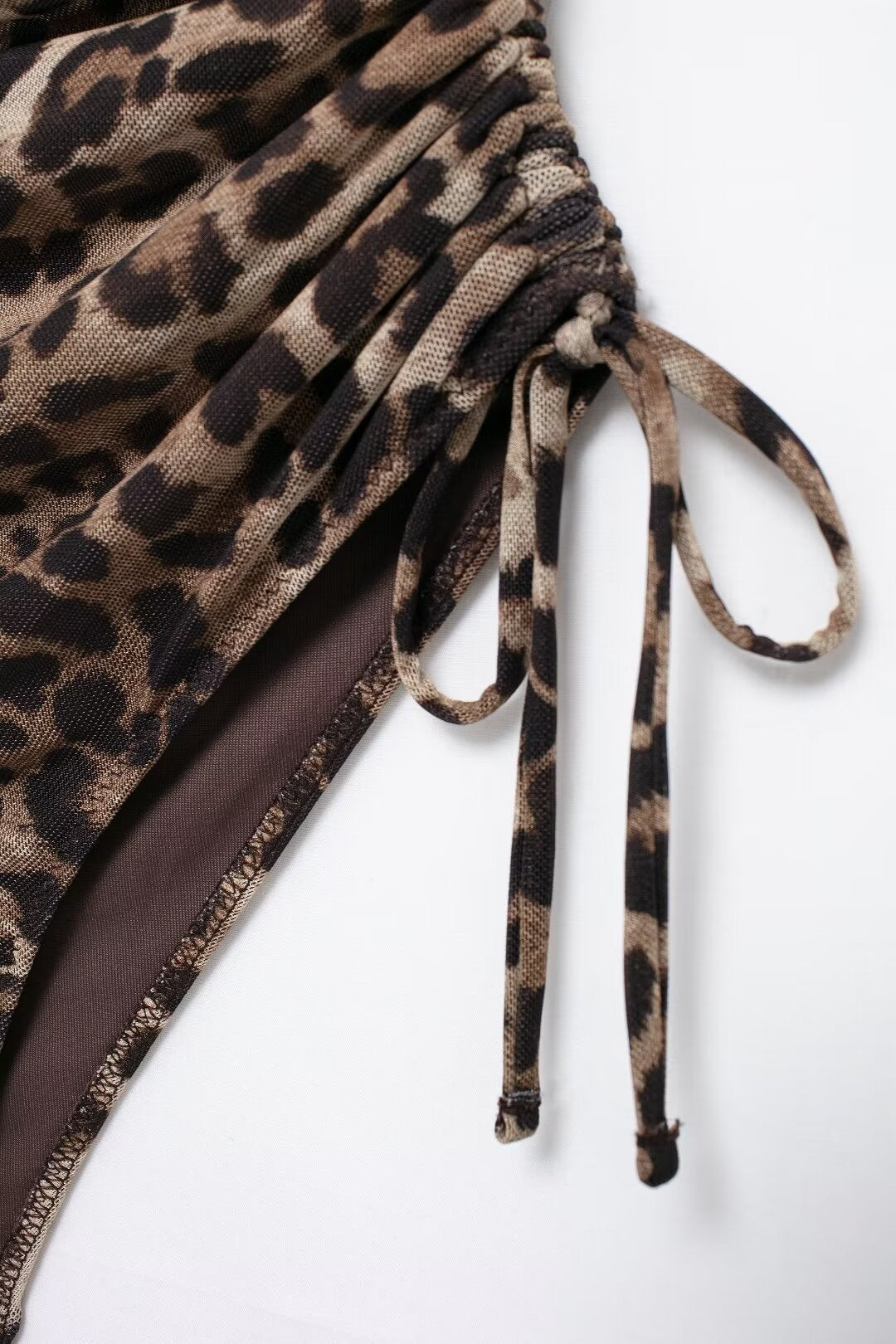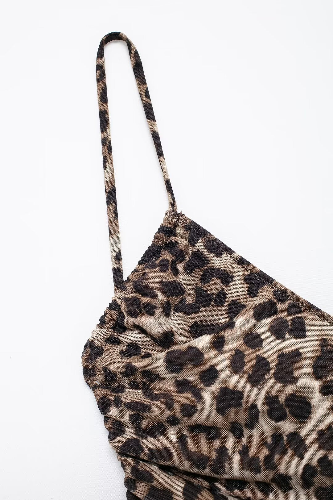 Traje de baño ajustado con decoración plisada de red de seda con estampado de animales de verano