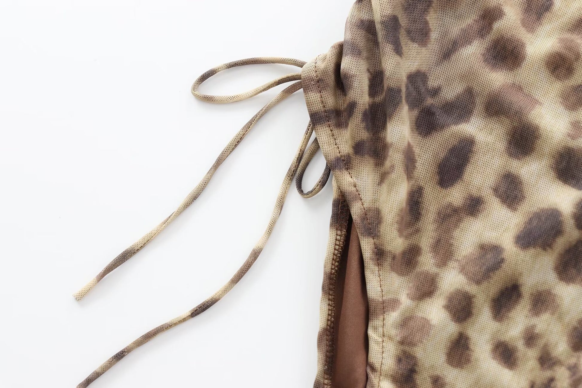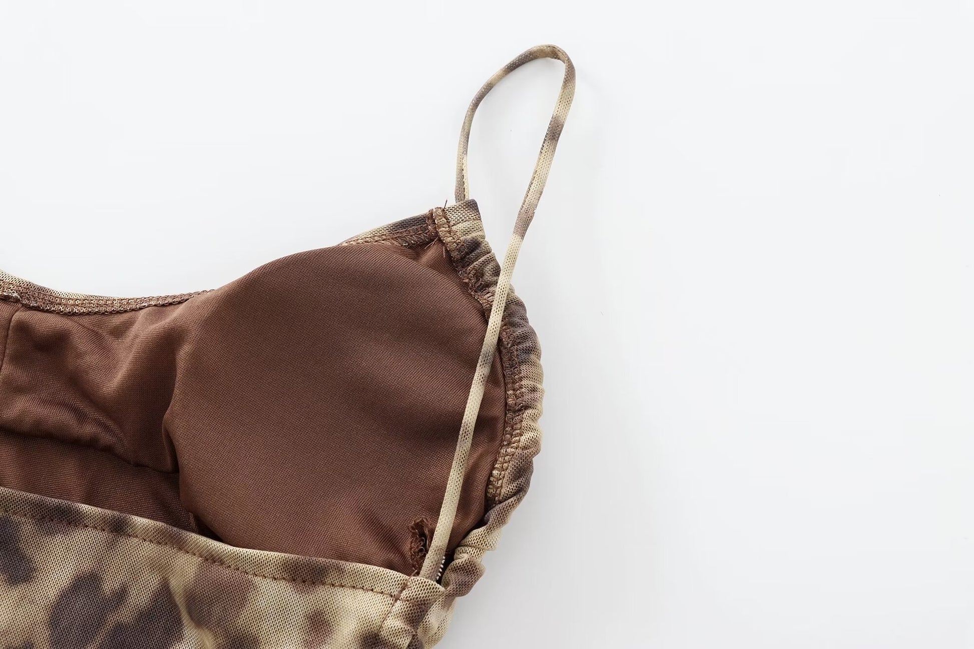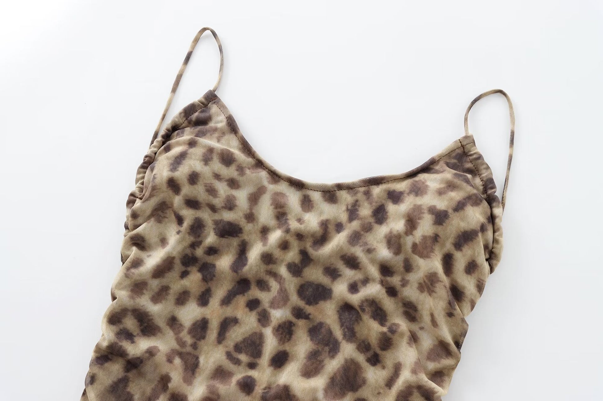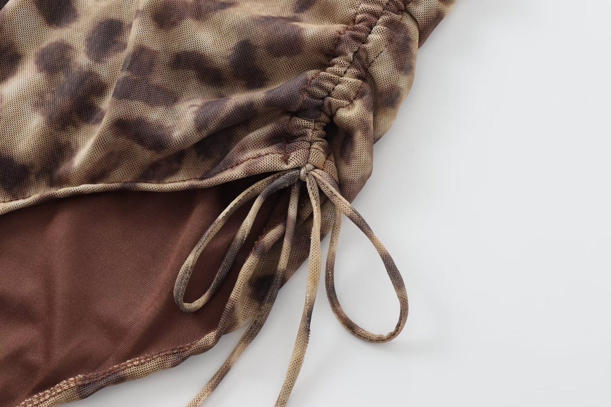 Traje de baño ajustado con decoración plisada de red de seda con estampado de animales de verano
