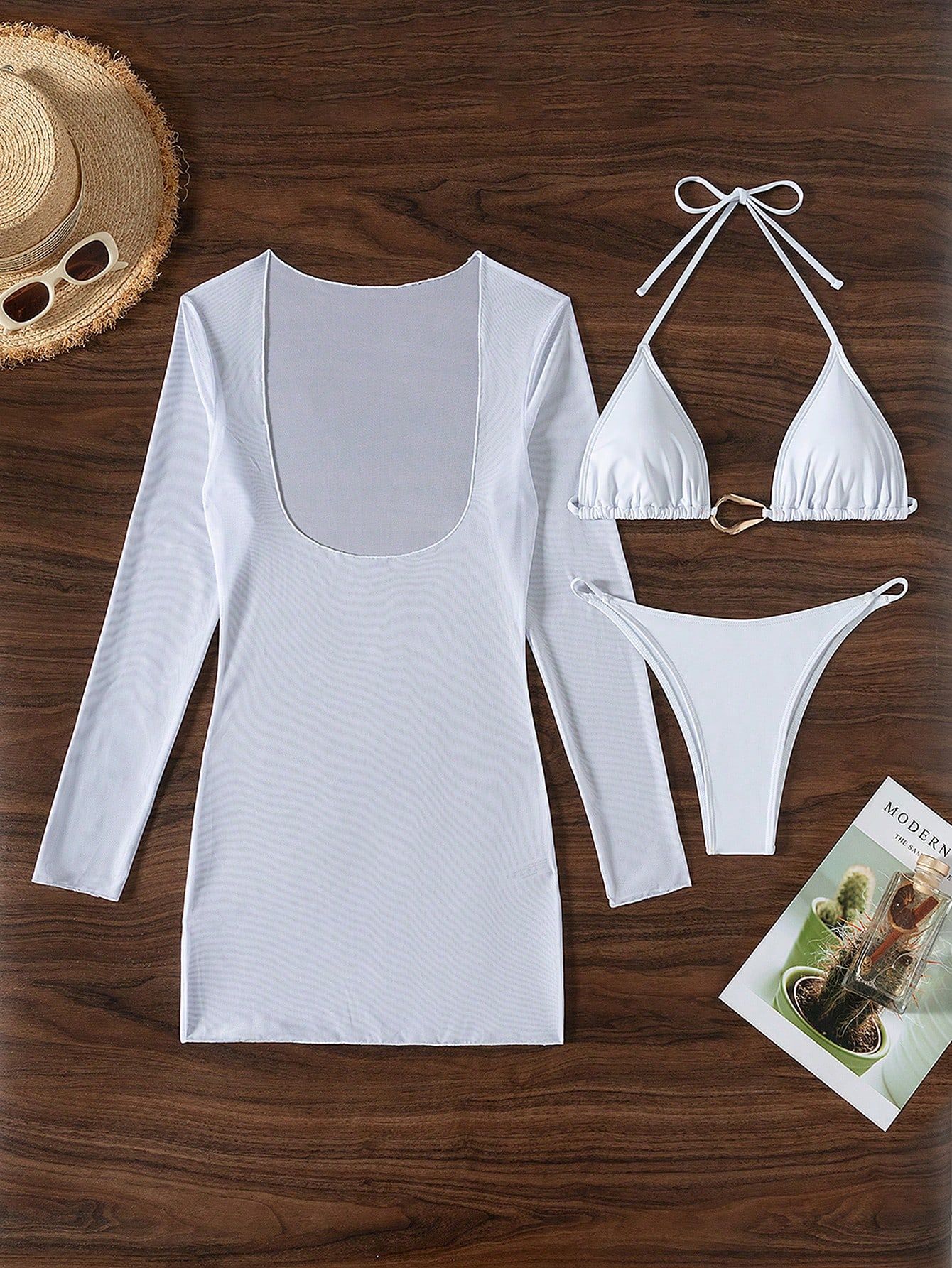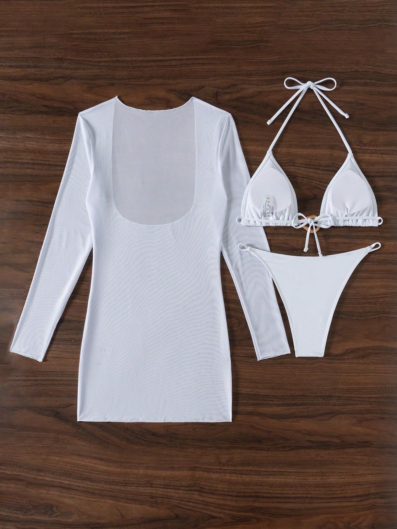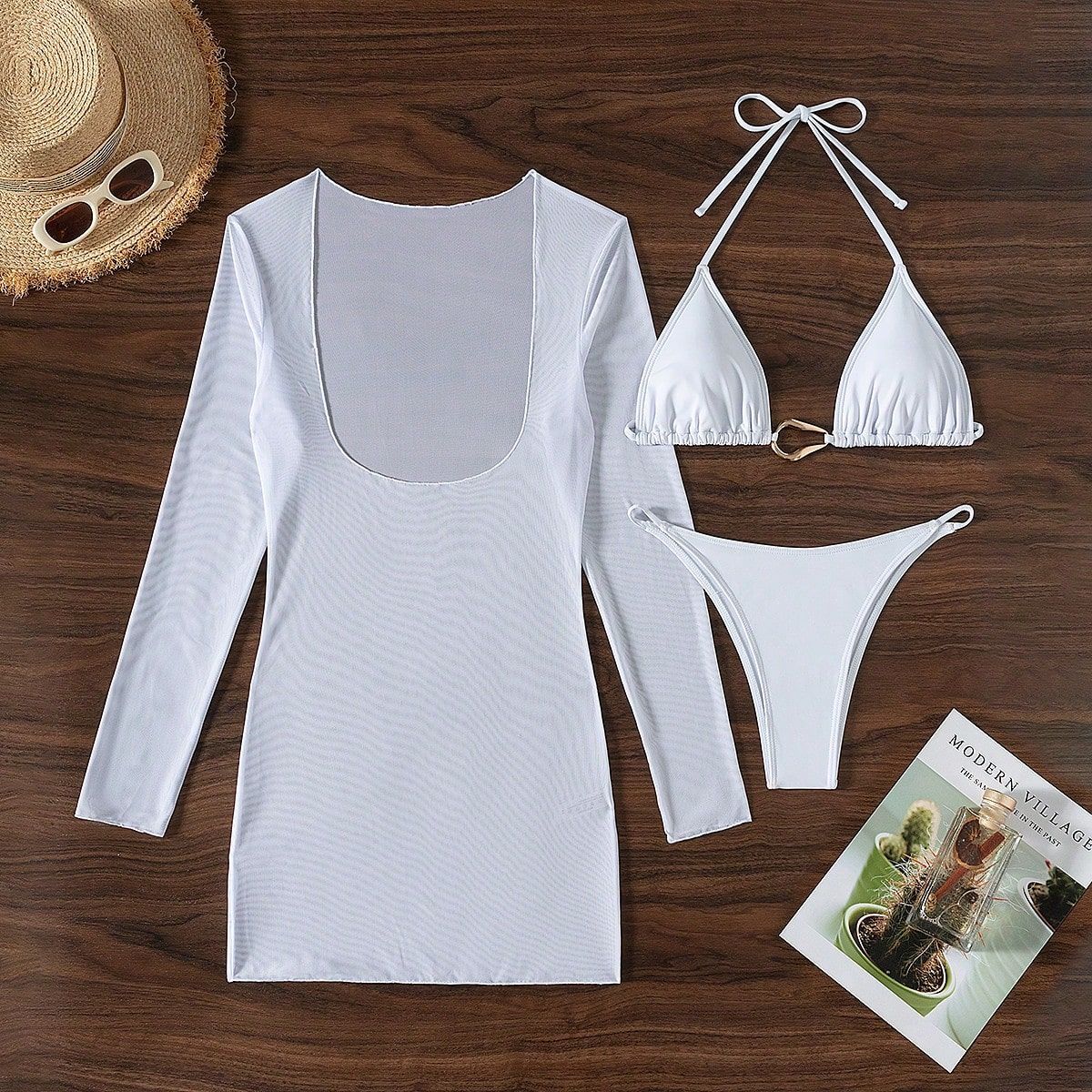 Traje de baño de playa de verano Traje de baño de manga larga Protector solar Malla Traje de baño de tres piezas
