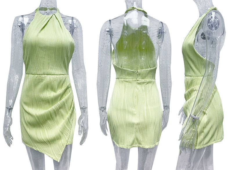 Verano elegante ajustado alto grado textura halter espalda descubierta dopamina sexy