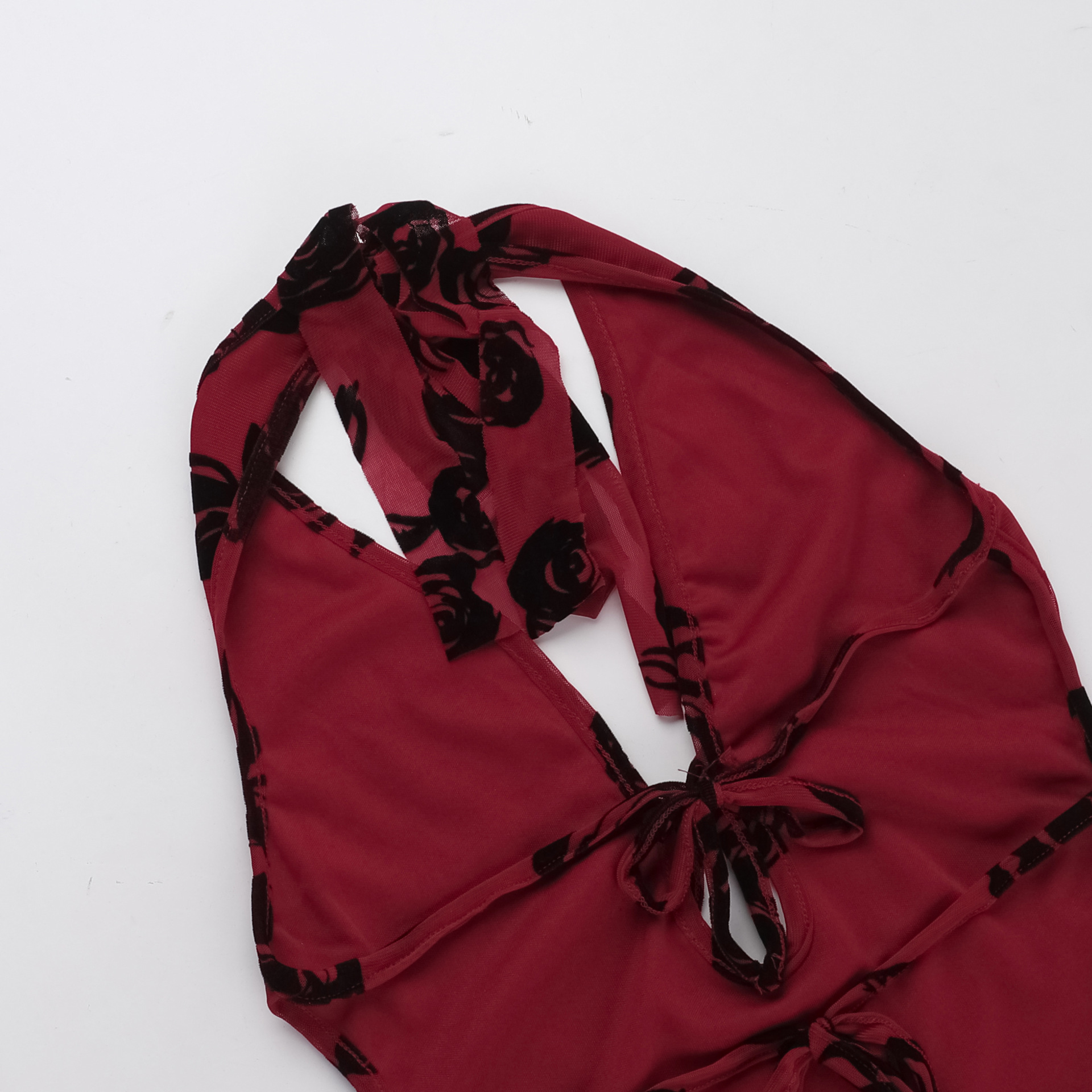 Vestido halter sexy con estampado floral ajustado y elegante de verano para mujer