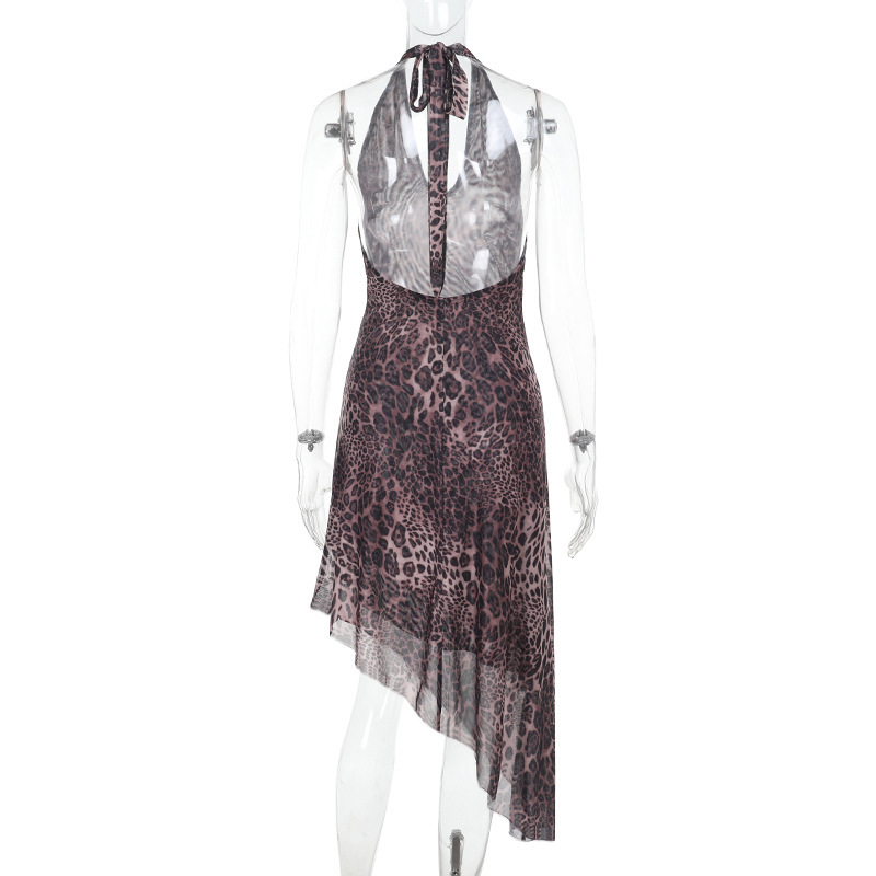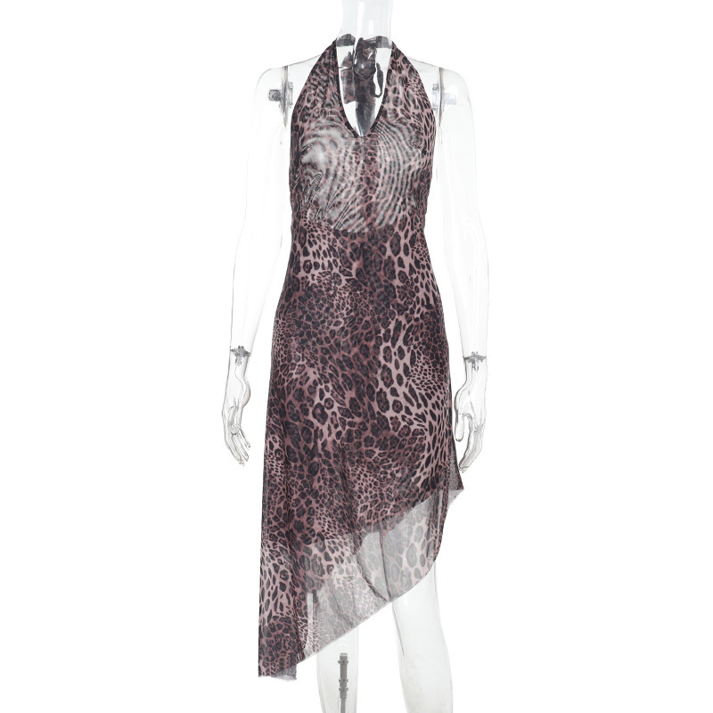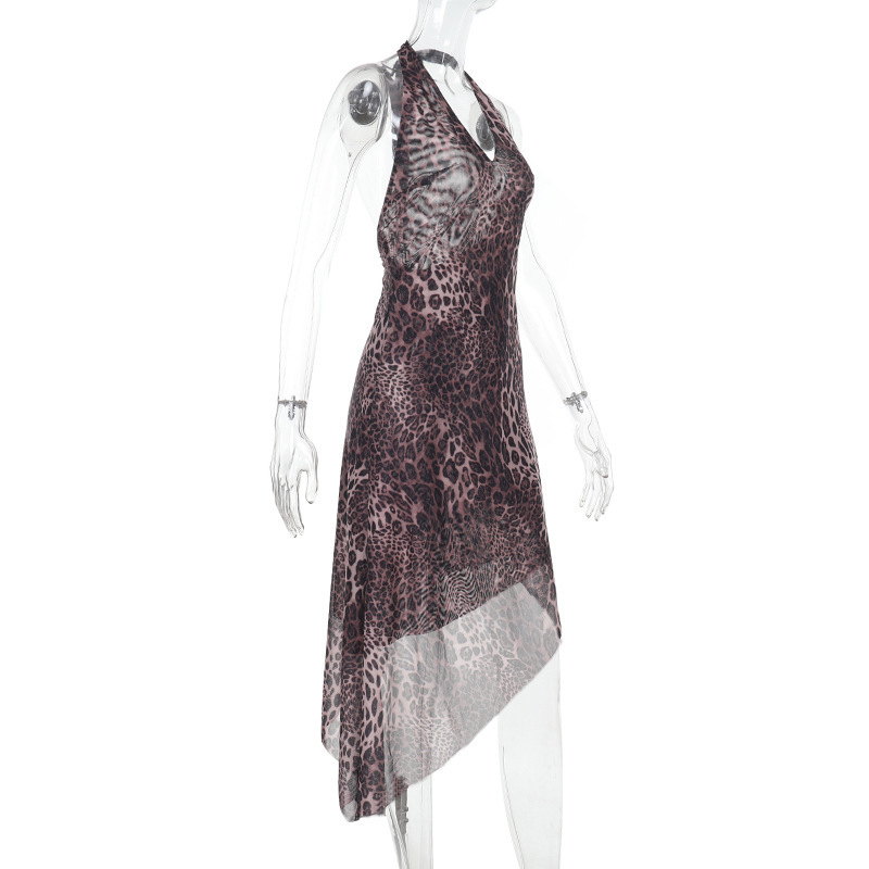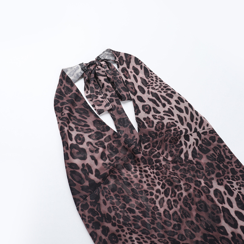 Vestido halter de verano para mujer, sexy, con estampado de leopardo y malla