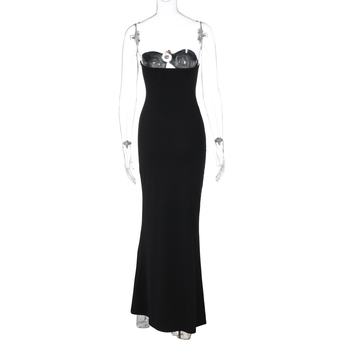 Vestido de verano con decoración de metal y costuras ahuecadas, vestido sexy ajustado con parte superior de tubo para mujer