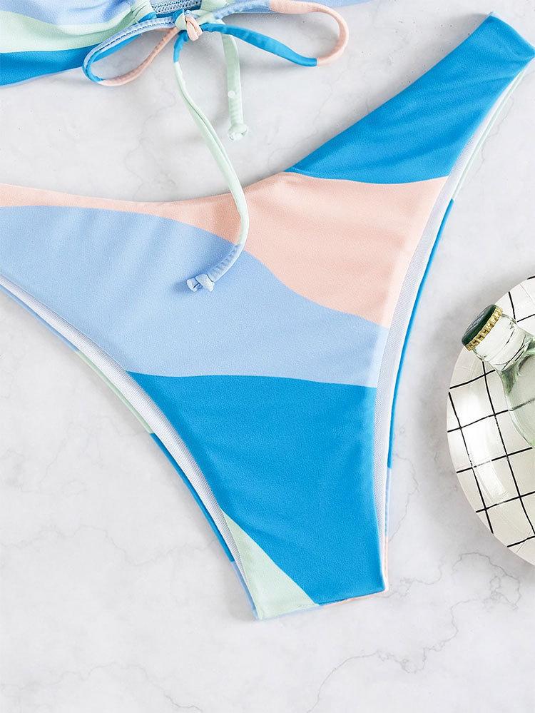 Traje de baño de dos piezas con estampado floral y cintura alta para mujer