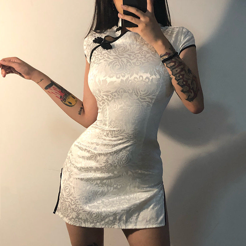 Vestido cheongsam retro ajustado con hebilla de rana y cintura alta sexy de verano