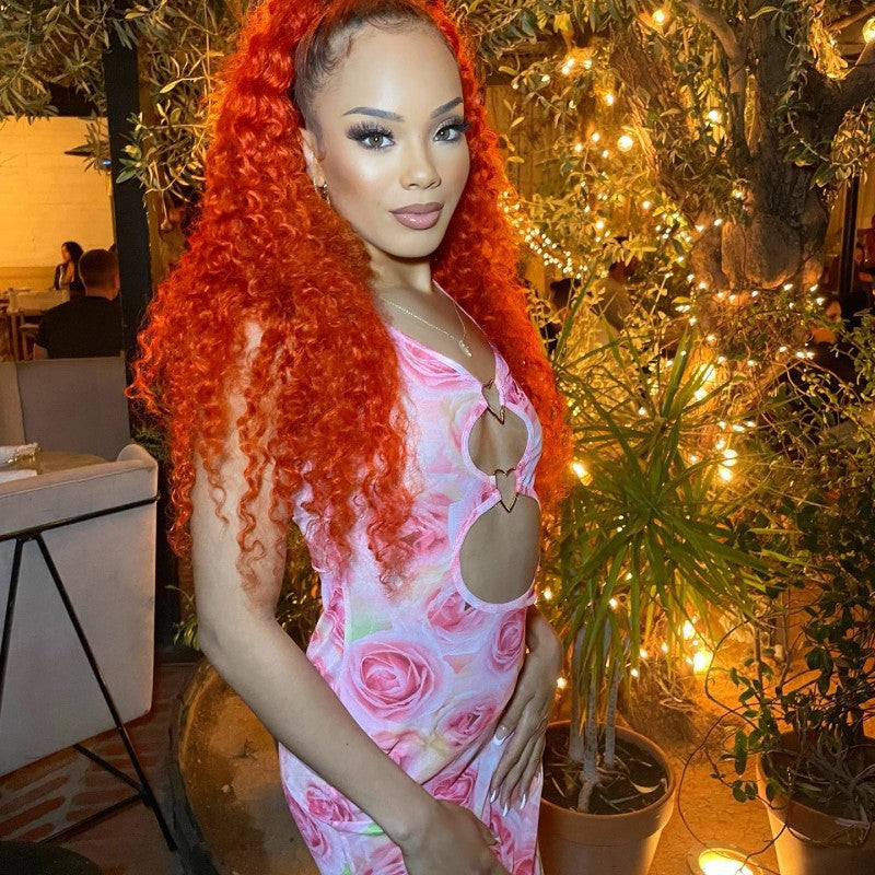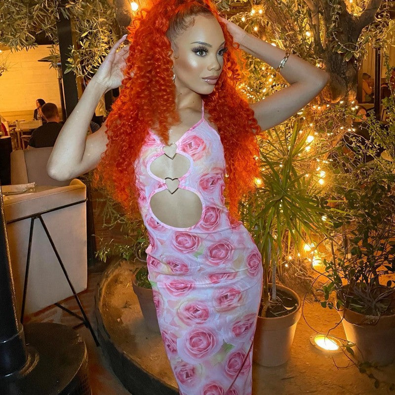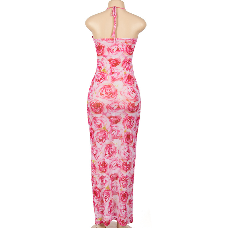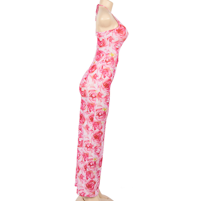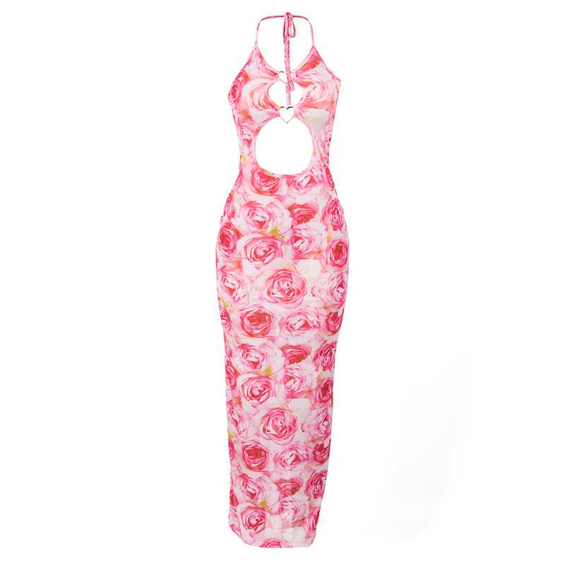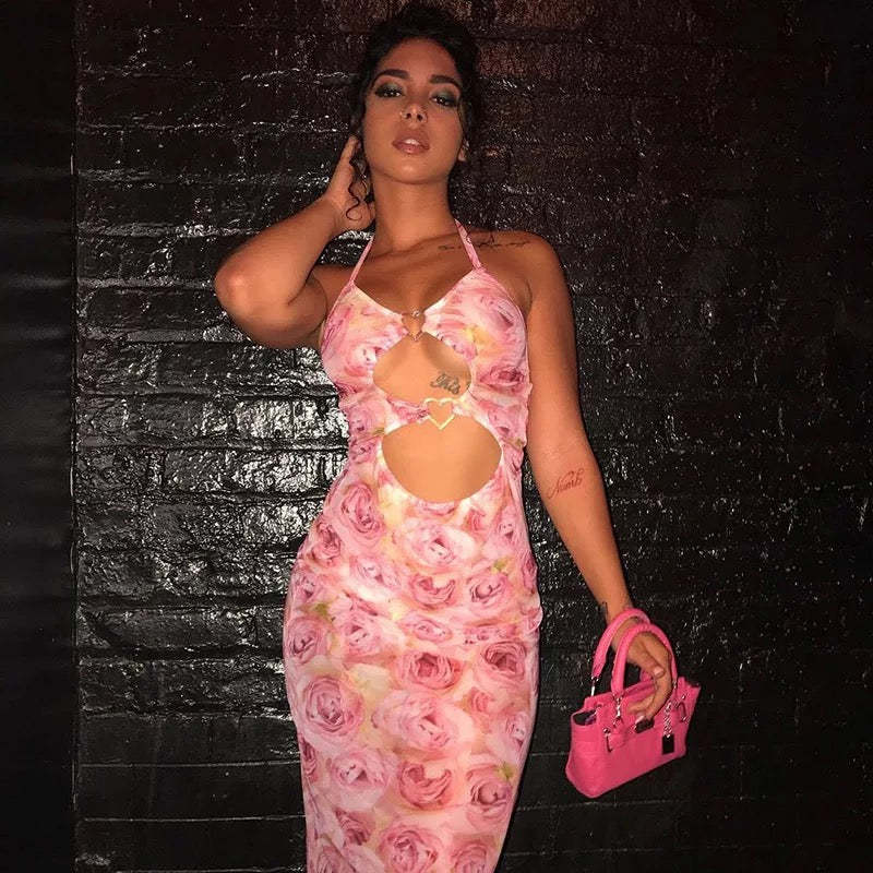 Vestido largo de verano sin mangas con estampado floral, encaje, costuras en forma de corazón, aberturas y cortes