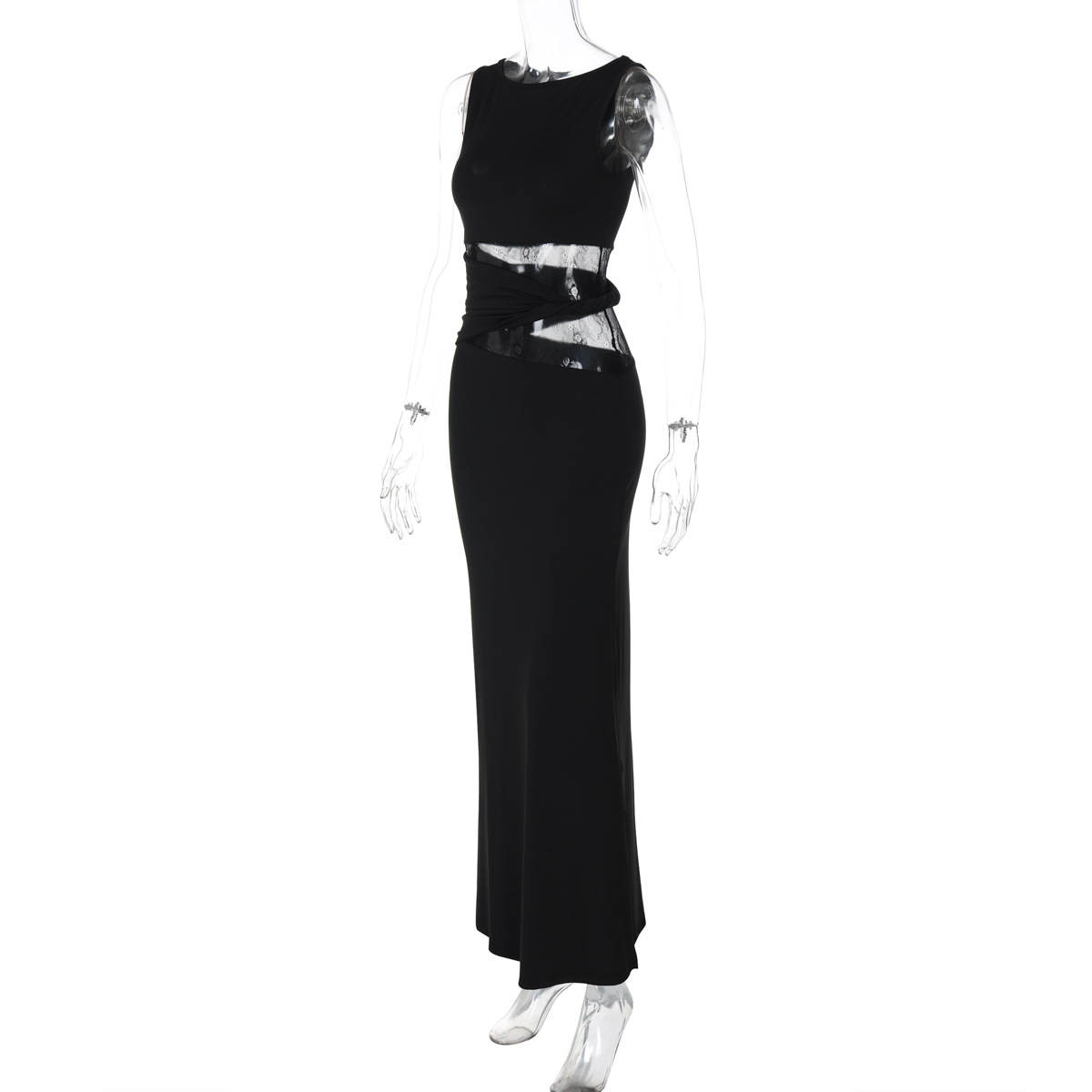 Vestido largo de verano sin mangas con encaje sexy y costuras, elegante y ajustado.